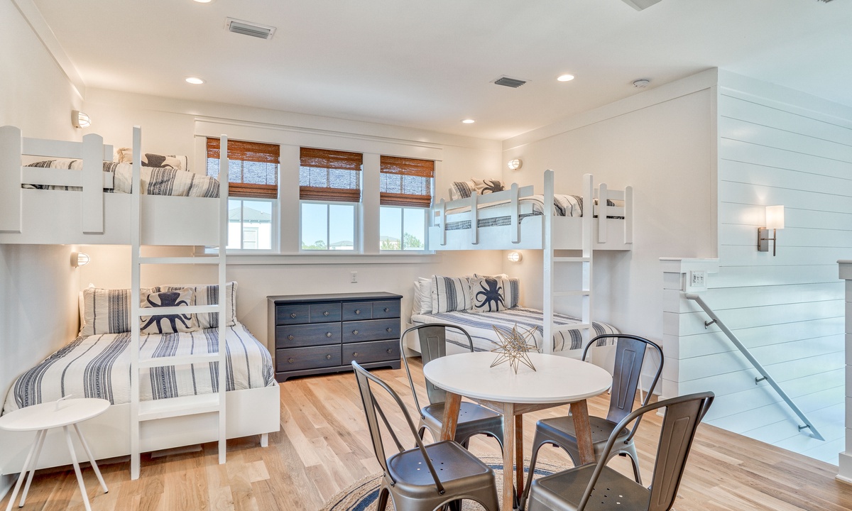 One of the best homes we have stayed in on 30A! House is well kept, beautifully decorated and is the only place I have stayed where they have plenty of towels for everyone and you don’t have to do laundry every day! The 3rd floor loft was perfect for four teenage girls and the back porch was relaxing after a good day at the beach! Kitchen was extremely well stocked and loved the coffee makers on every floor! We will book this one again!- Laurie S from Mandeville,LA, Posted: