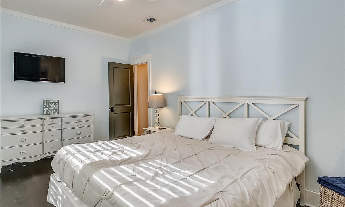 The house is lovely. The bedrooms are a good size with nice bathrooms. Loved the large kitchen to hang out in with family. The golf cart was such a nice convenience to get us around the Seagrove Beach area. Would definitely stay here again.
