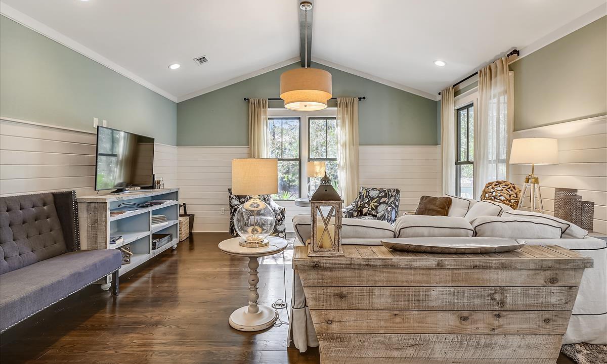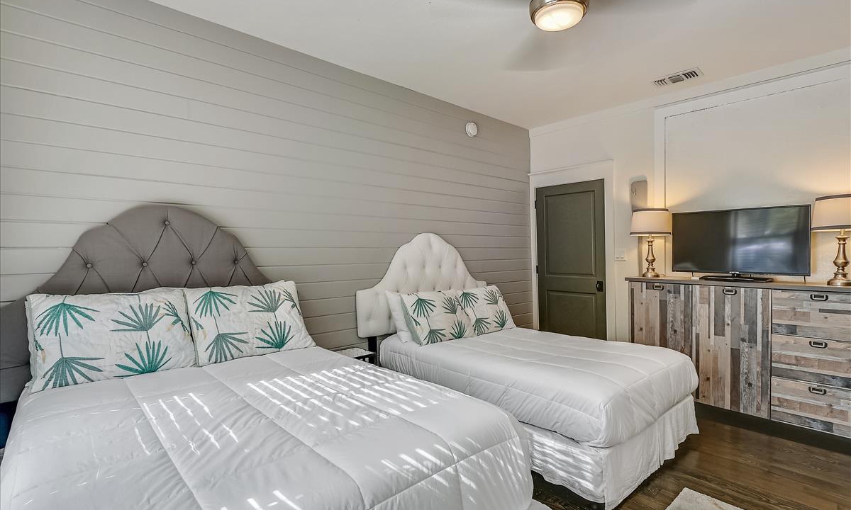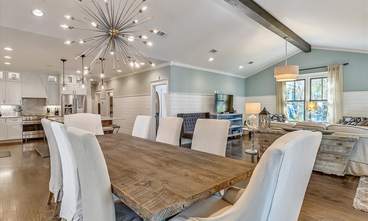 This house has it all! The common areas are as large as they look on line. We had plenty of room for 8. The bathrooms are large. The beds are super comfy. The golf cart was an added bonus. I will definitely stay here again. The location is perfect! Just so you can plan well…two large SUVs would not fit in the parking pad but our mid size SUVs fit. I read other reviews complaining about the traffic noise. While I could hear cars from time to time, it was not bothersome at all. This place is wonderful!!