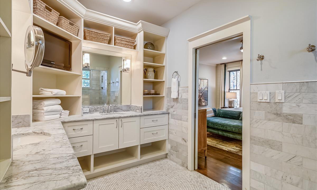 The open-concept design of the main living area creates the perfect space for unforgettable moments. Unwind on luxurious, plush seating in the bright, sunlit living room, or gather for cozy movie nights on the large flat-screen TV. The seamless flow between the living, dining, and kitchen areas ensures effortless hosting, whether it’s casual family mornings or lively evenings with friends.