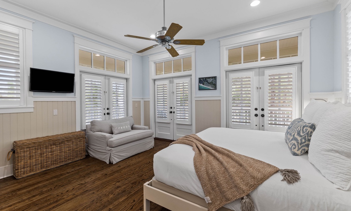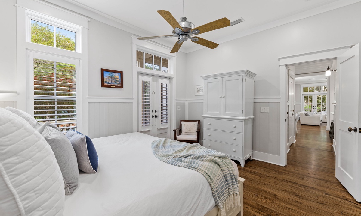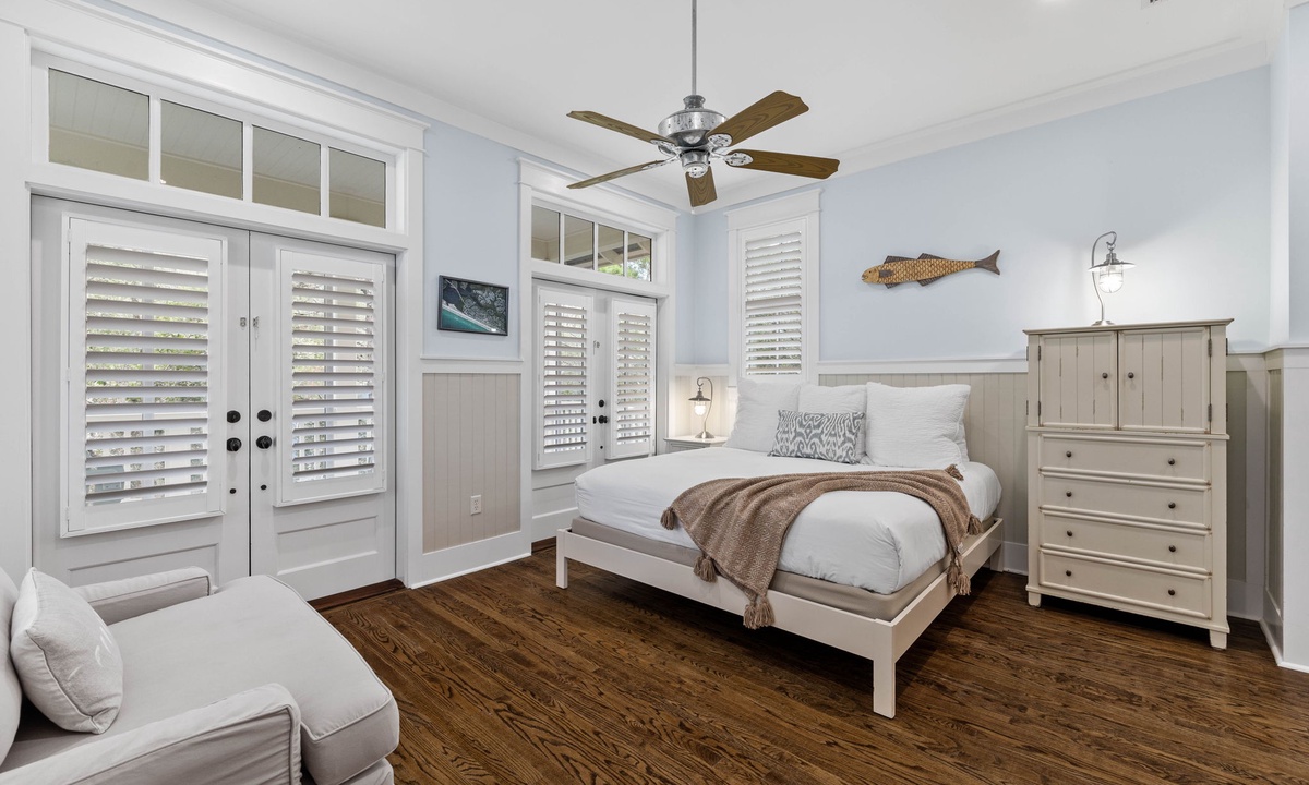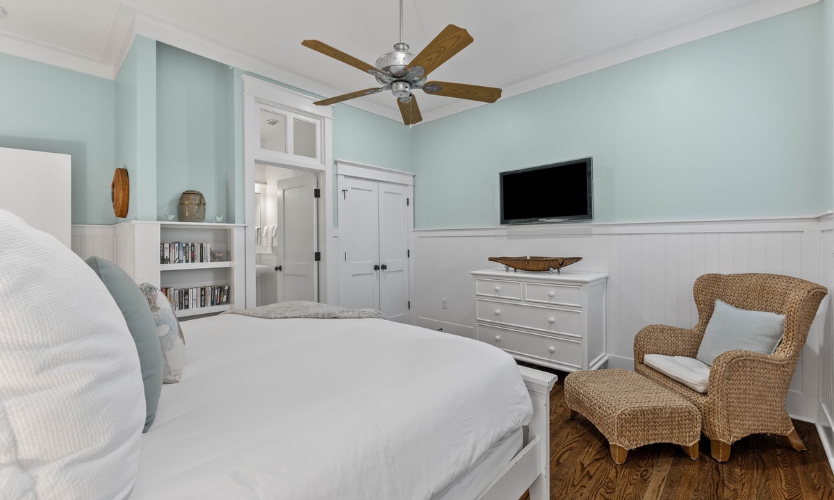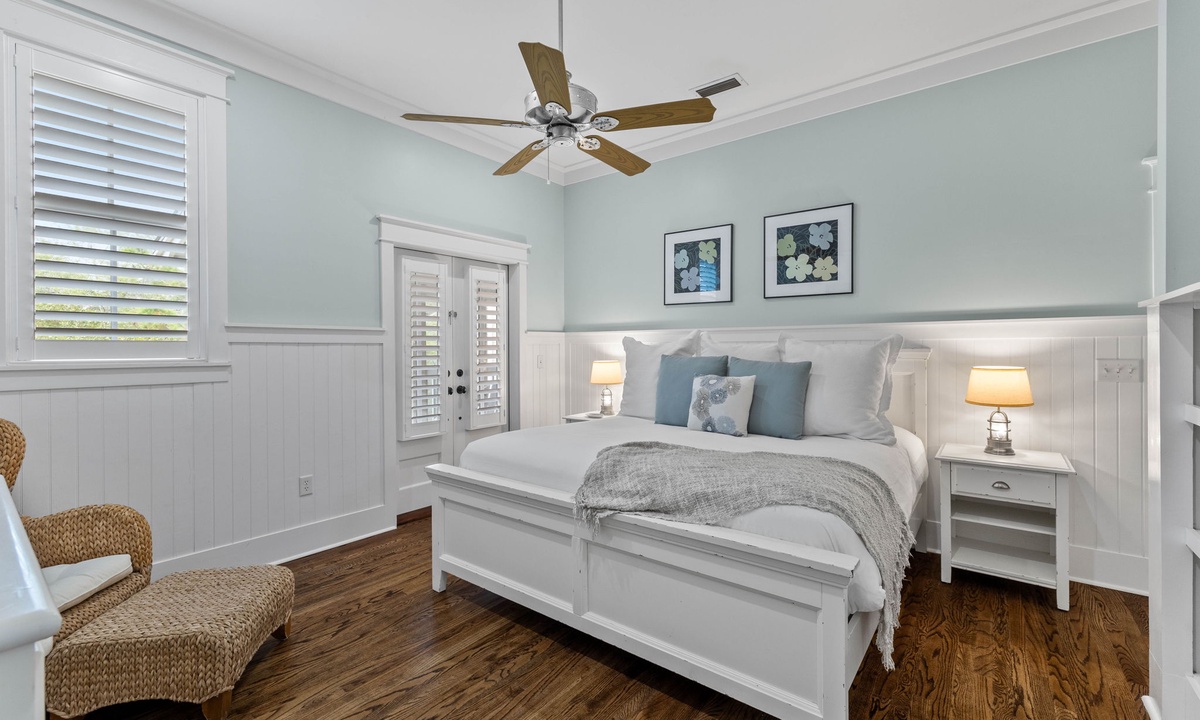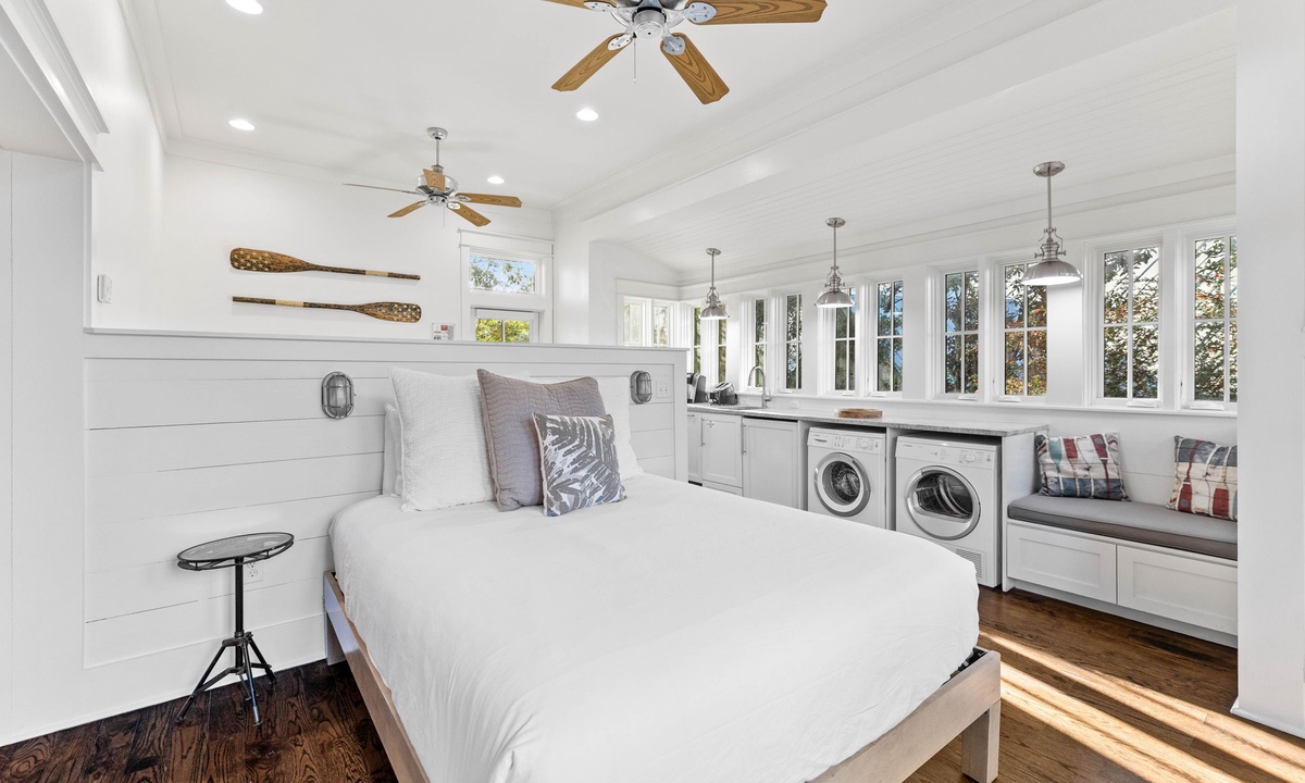 On the second floor there is a master suite with a king bed.