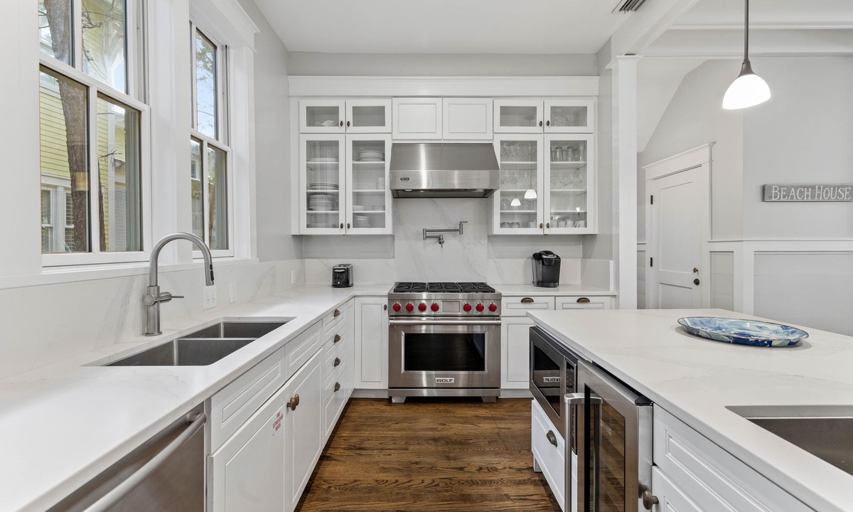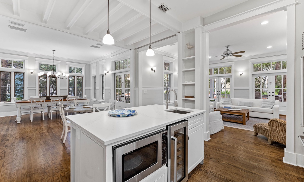 We couldn’t have been happier with our choice of 622 Western Lake Dr. in Watercolor for getting together with our grown kids, their spouses/partners, and our grandchild. With five bedrooms (including the carriage house), every couple had their own nice room with private bathroom (plus a powder room half-bath, just off the main kitchen/living area). The house is so convenient to the Watercolor amenities (in Park district , near Marina pool & boathouse, just a few blocks to the Beachclub pools & beach access, with five cruiser bikes included for rides to Seaside, Camp Watercolor, trails around the community, and even Grayton Beach’s “Red Bar”. The kitchen was well equipped, with a nice large fridge, big gas stove/oven, microwave, dishwasher, and plenty of glassware & cookware. With eleven people, we chose to make dinners at the house each evening of the week, to save time & stress & expense of eating out at night (near bedtime for a toddler), and there were plenty of nice wine glasses & cocktail glasses & coffee mugs for everyone, and cookware & knives, etc for making big nice dinners. The Watercolor pools are luxurious and the beach is beautiful (with option to walk steps from the west beach access ramp to the Grayton Beach State Park beach, with natural dunes, less crowds, and room for a family to spread out with no buildings in sight). 30A Escapes was very responsive to the one issue we had (ice maker problem), and brought a portable ice maker for the counter and bags of ice whenever needed. They also, in addition to five included bikes, had another requested bike with child trailer and a small toddler bike with training wheels waiting for us locked up with the five included bikes). This was a “once in a blue moon” trip for us, in celebration of a retirement and other family milestones, and we’re glad we picked this location. Everyone left Watercolor feeling like they’d had a vacation to remember for a lifetime.- Anonymous U , Posted: