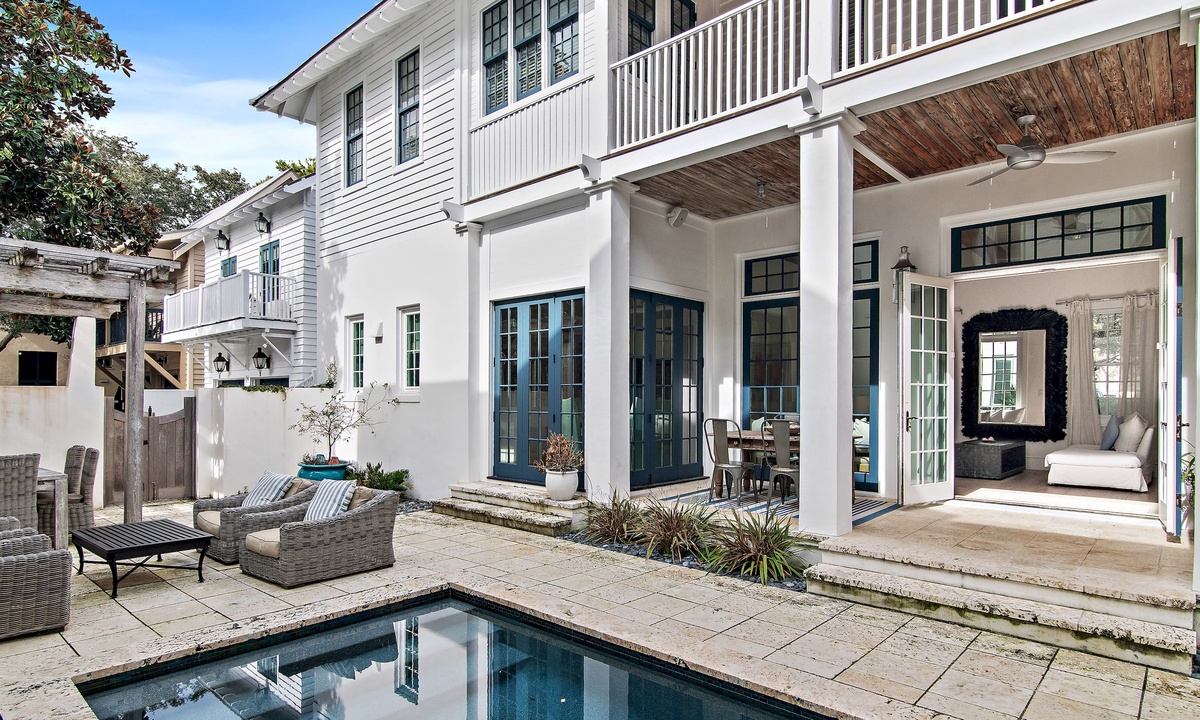 30A ESCAPES presents… “90 N Cartagena Main House”, a luxurious Rosemary Beach retreat blending coastal charm with modern comfort. Designed for unforgettable gatherings, this 4-bedroom, 3.5-bath home sleeps 12 and boasts a private, seasonally-heated pool, expansive outdoor living, and premium amenities. Whether you’re soaking up the sun poolside, enjoying cocktails on the wrap-around balcony, or exploring 30A’s scenic paths on one of the 6 included bikes, your perfect beach escape begins here. Learn more below…👇