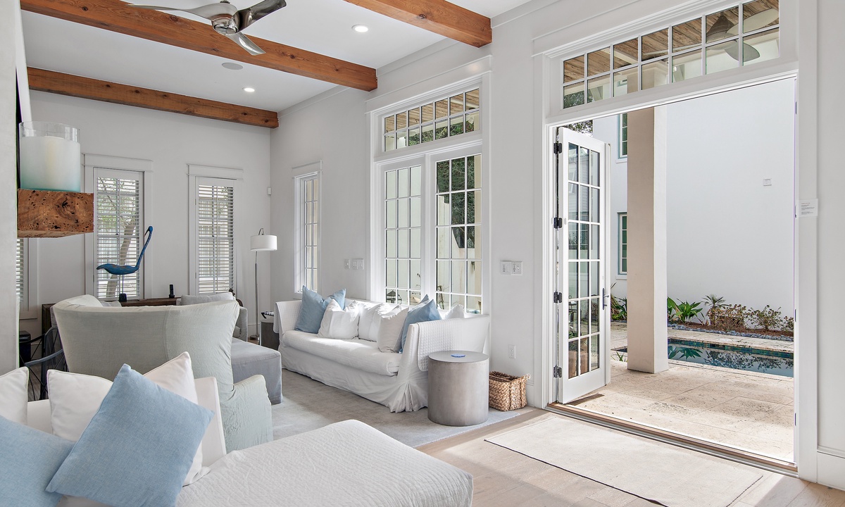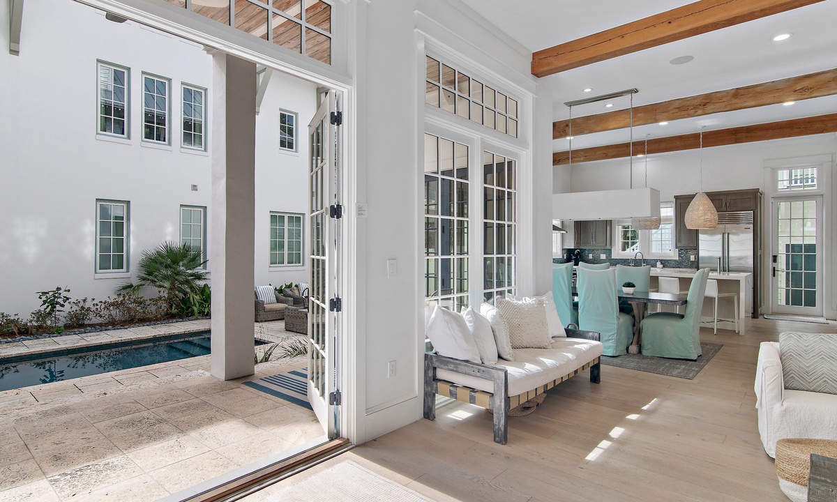 *** HIGHLIGHTS ***Gather in the bright and airy living room where plush seating meets coastal style. Large windows frame the pool view, creating a seamless connection to outdoor spaces.