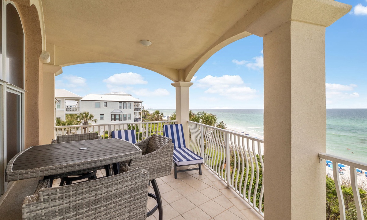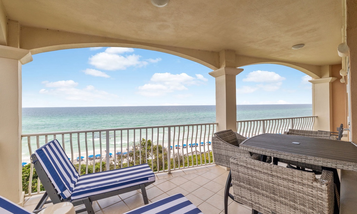 Take in the beauty of the Emerald Coast from your expansive corner balcony. Relax on the lounge chairs as the sun sets, or head down to the private Gulf-front pool just steps away.