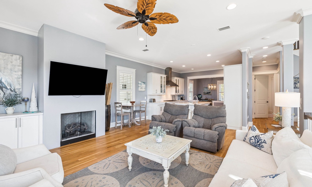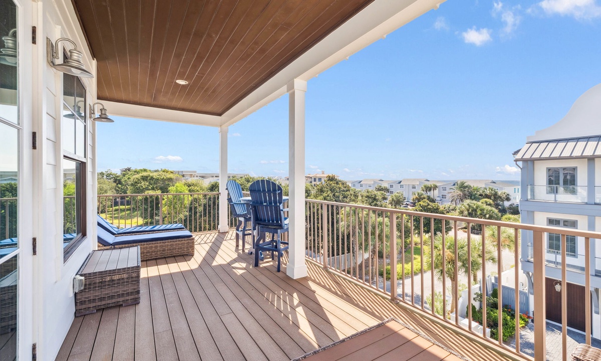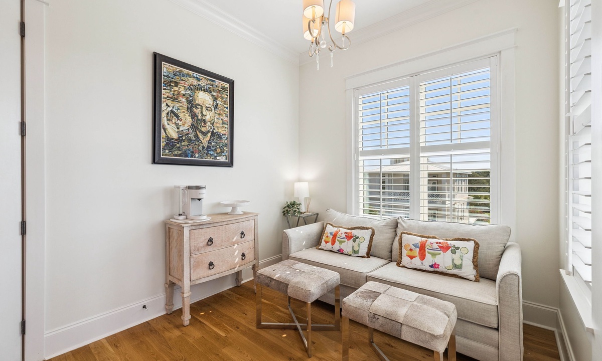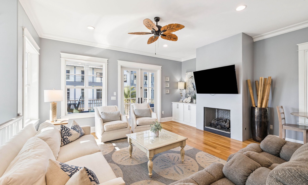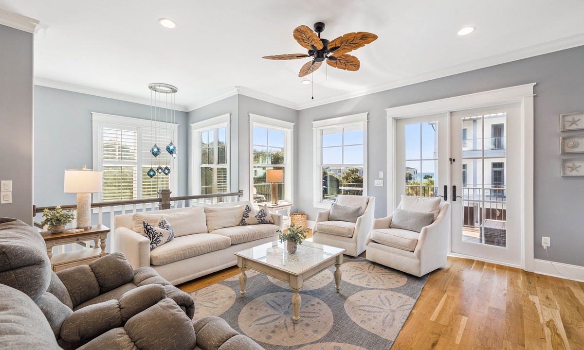 ⭐"We loved the quiet west end of 30A and the convenience of two primary suites with 2 laundry rooms. The home was beautiful, fully equipped, and just steps from the beach. Plus, being so close to Shunk Gulley made dining a breeze!" – Jenn M.Second Floor Living Area: