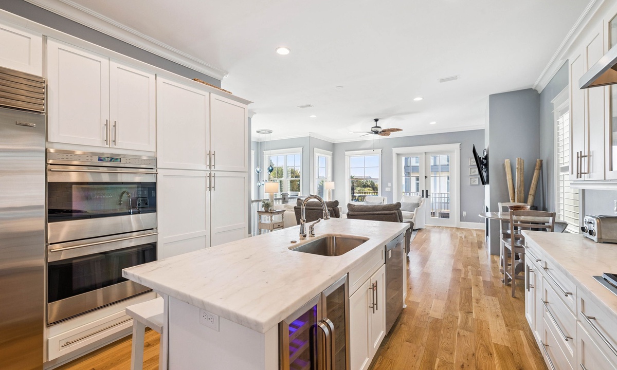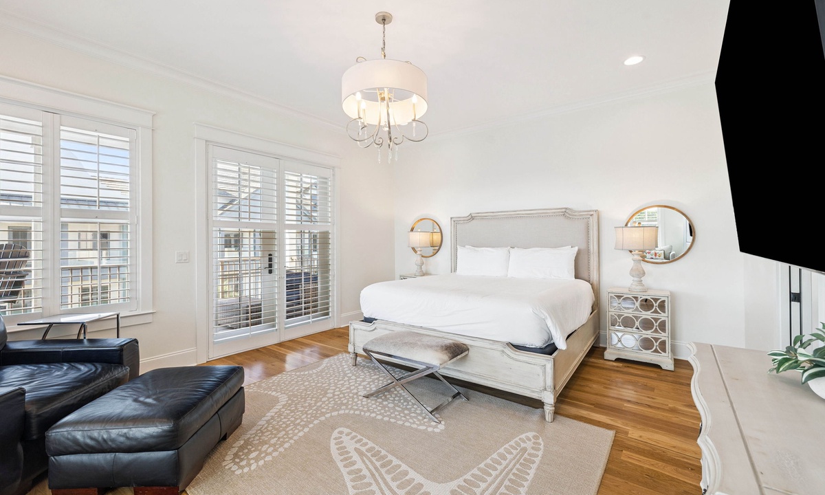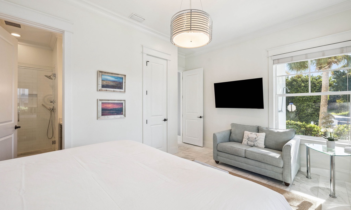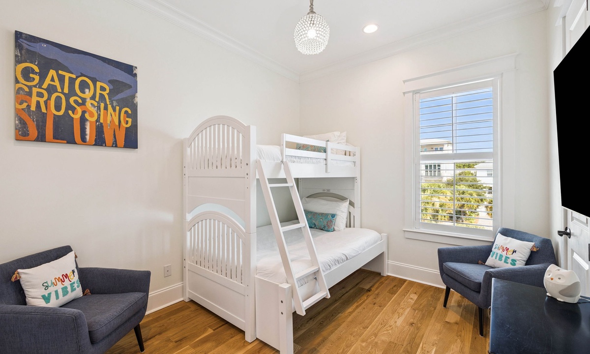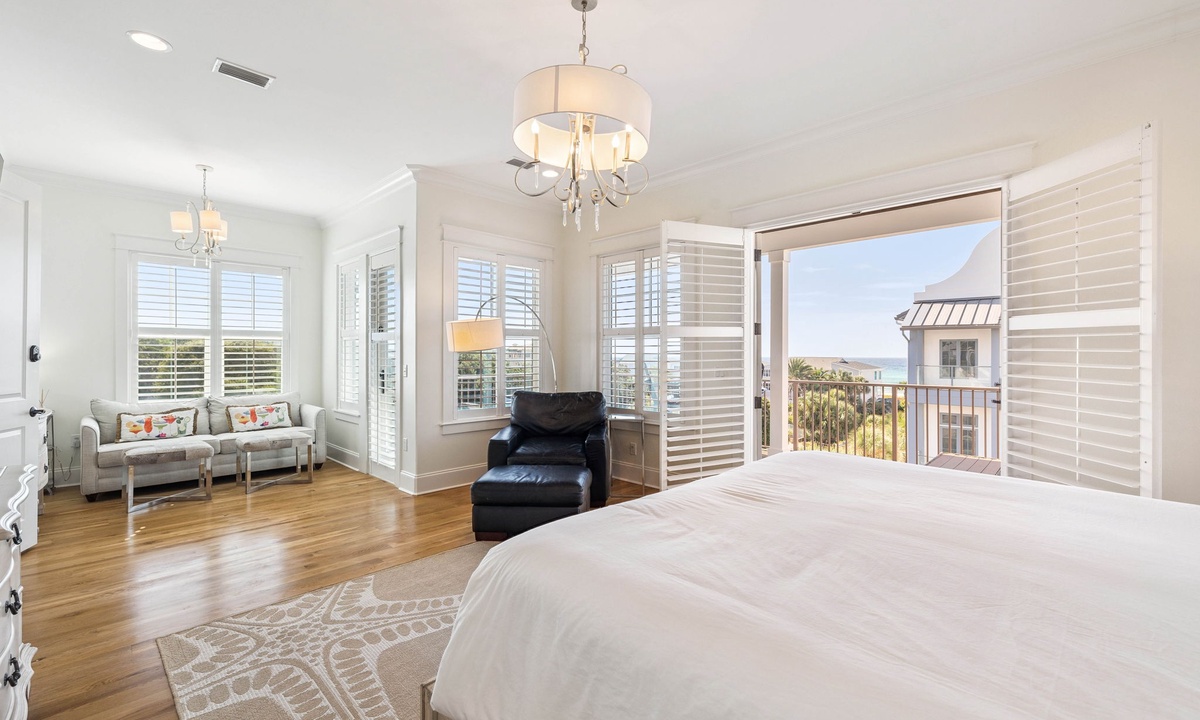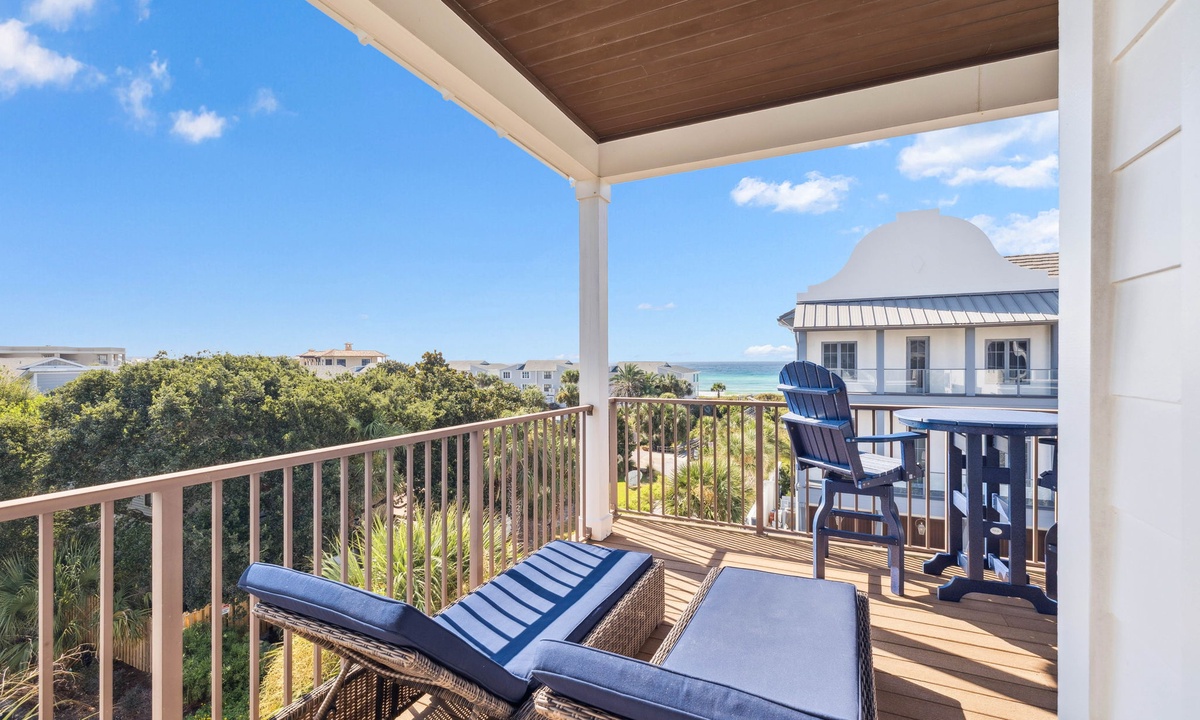 ⭐"We loved the quiet west end of 30A and the convenience of two primary suites with 2 laundry rooms. The home was beautiful, fully equipped, and just steps from the beach. Plus, being so close to Shunk Gulley made dining a breeze!" – Jenn M.Second Floor Living Area: