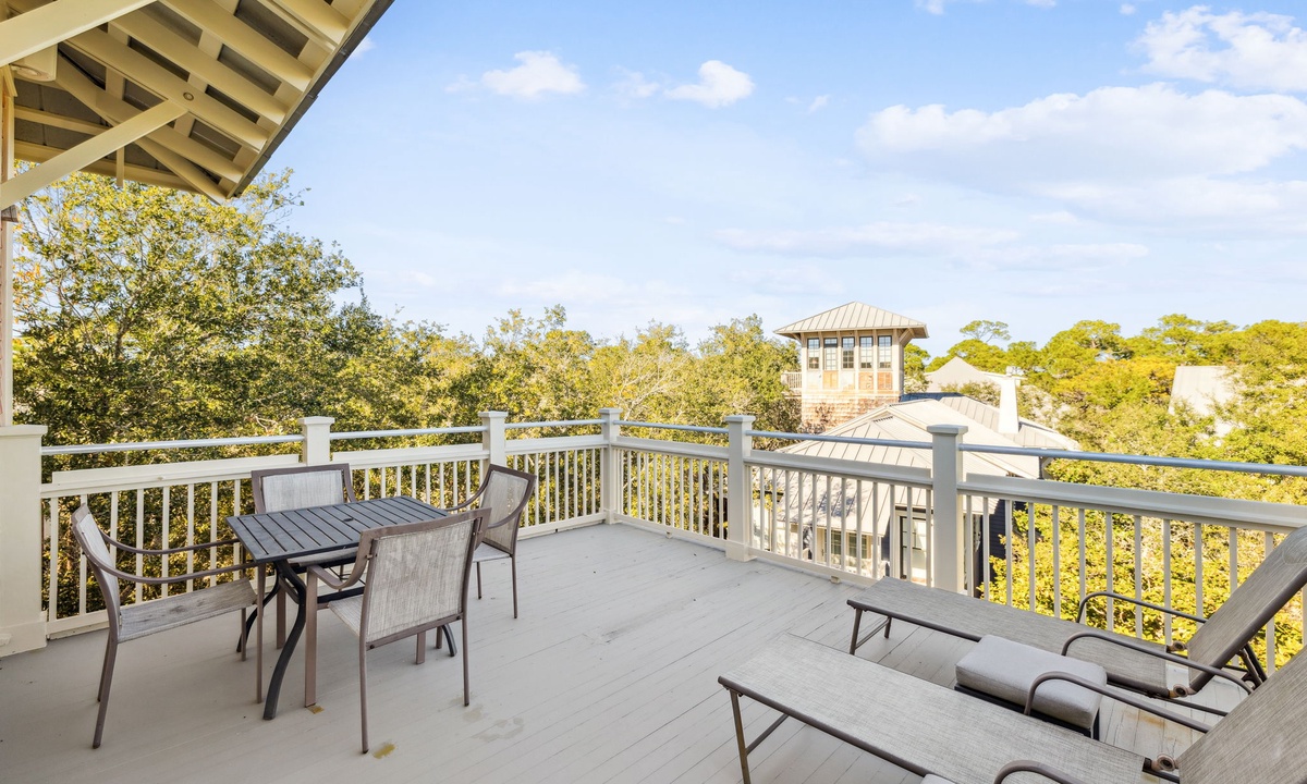 Our family stayed at 104 Sunset Ridge Lane, and we thoroughly enjoyed our vacation! We have rented in Watercolor 4 times over the last few years, and this location was BY FAR the best! It is literally a 2-3 minute bike ride to the beach, restaurants and shops in Watercolor. And speaking of bike rides, the home comes with 4 adult bicycles, which we used every single day! We also loved the quiet street that had minimal thru-traffic. We had 4 teenagers with us, and they used the tower (cupola) as their hangout. The upstairs deck was lovely for stargazing, with lounge chairs to relax on while enjoying a glass of wine. There was plenty of room in the house, and although there were 6 of us, we all had ample space. Christopher from 30A Escapes (manager) was fantastic and easy to work with. If you are looking for the perfect location in Watercolor for your family vacation, this is your spot!