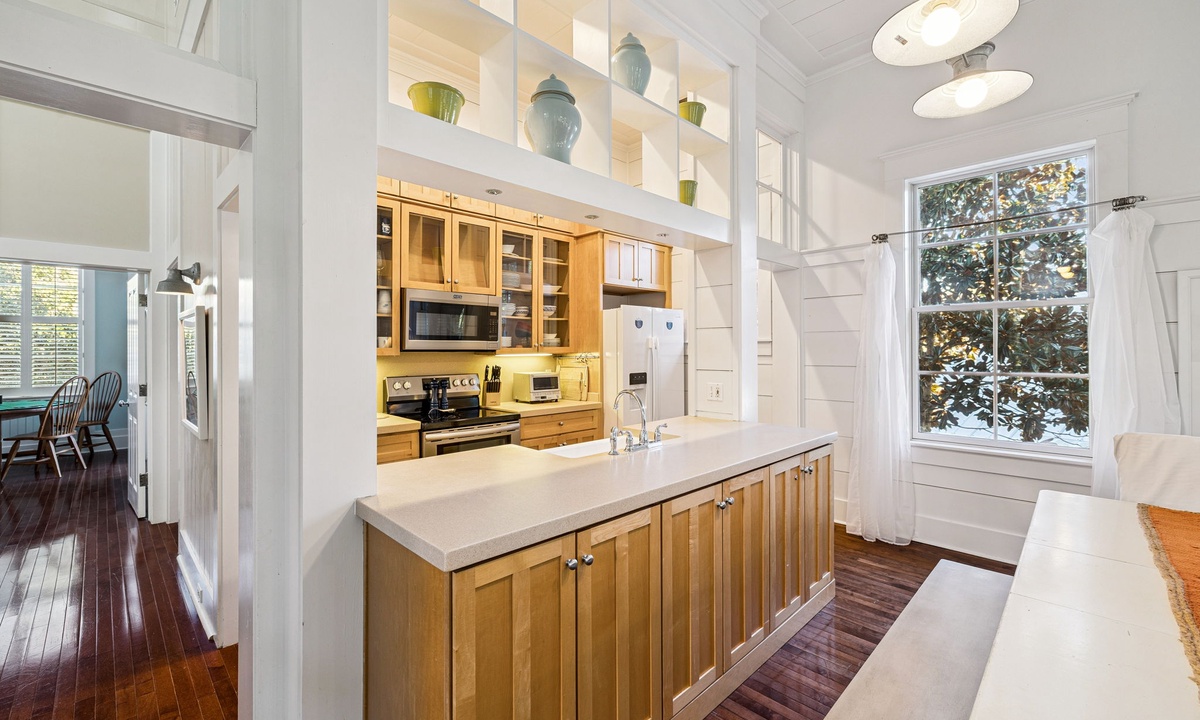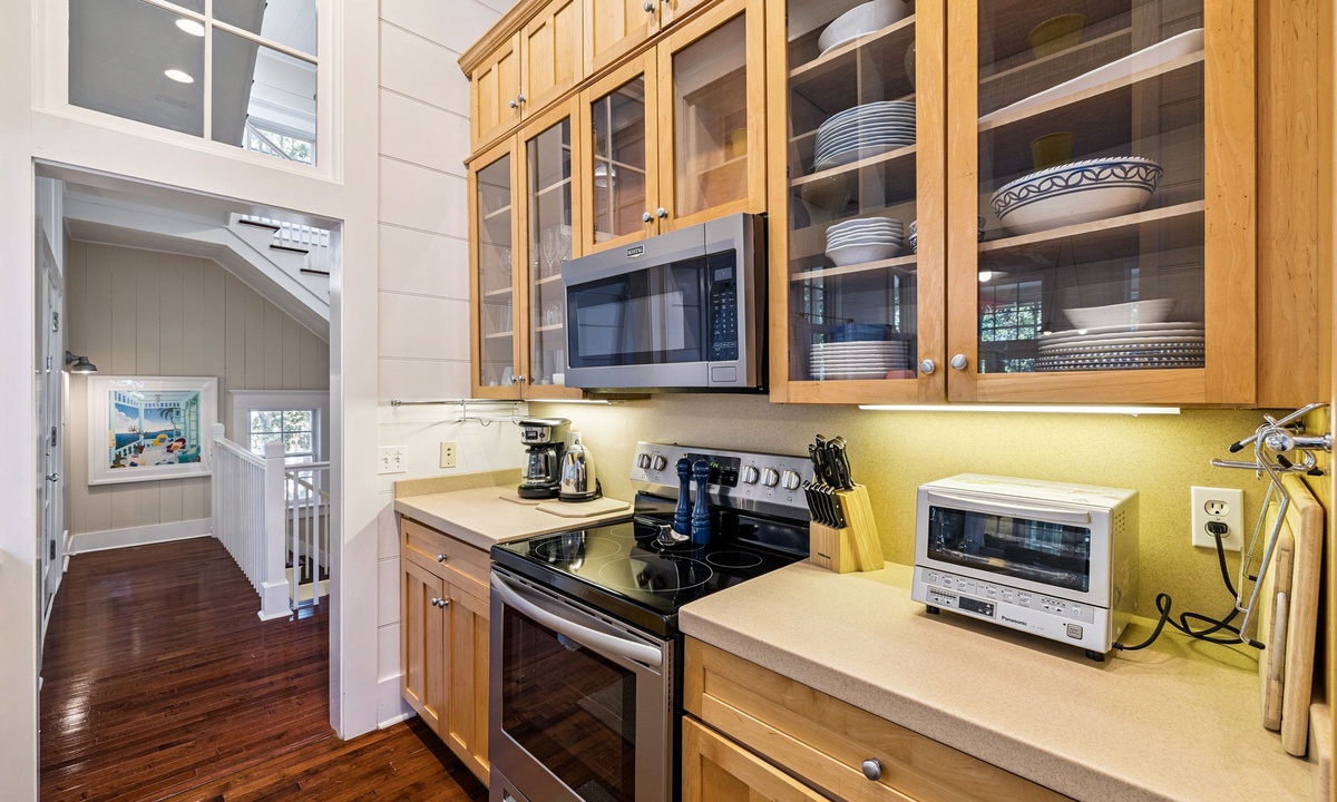 The fully-equipped kitchen is a chef's dream, providing everything you need to create delicious meals during your stay. Featuring spacious countertops, state-of-the-art appliances, and a cozy, adjacent dining area, this inviting space is designed to make cooking and sharing meals effortless and enjoyable for everyone.