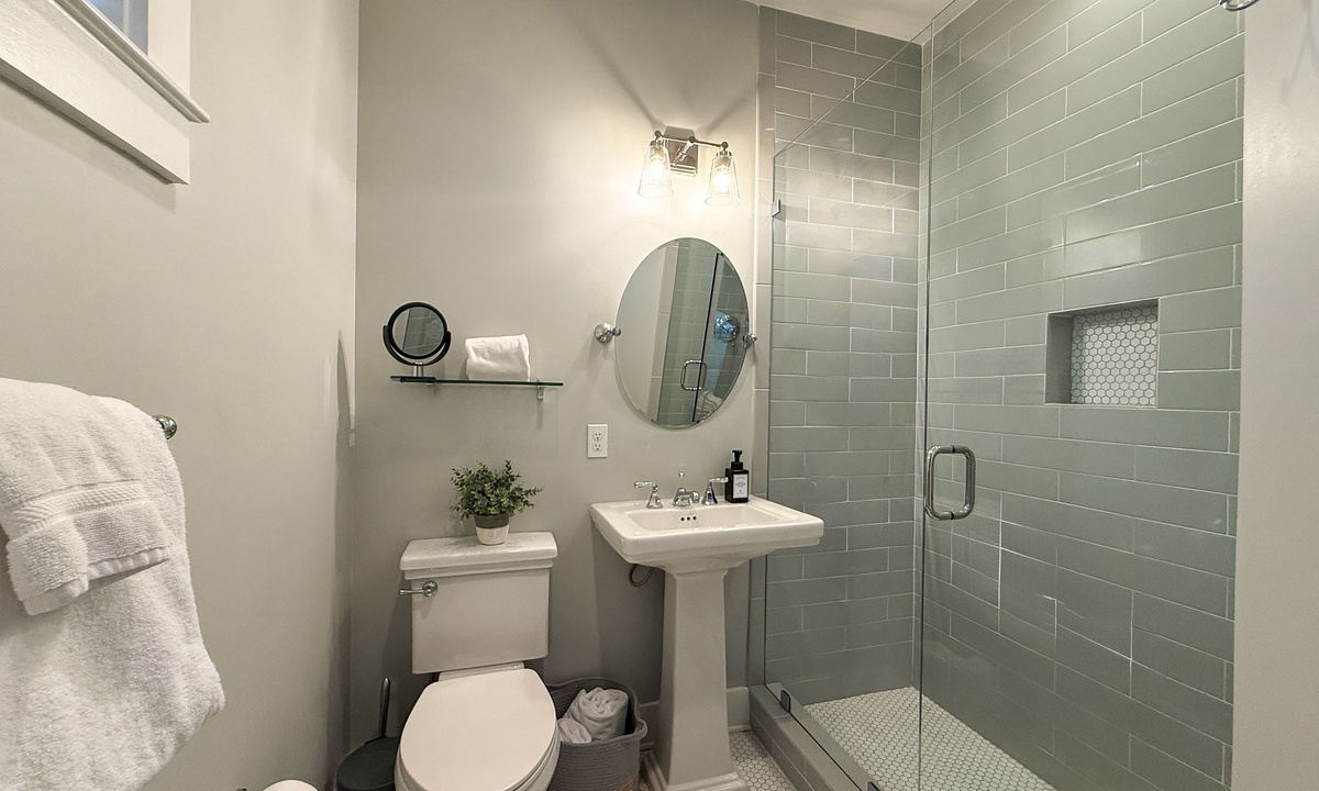 - Queen Guest Suite: Queen bed, flat-screen TV and En-suite with single vanity and walk-in shower