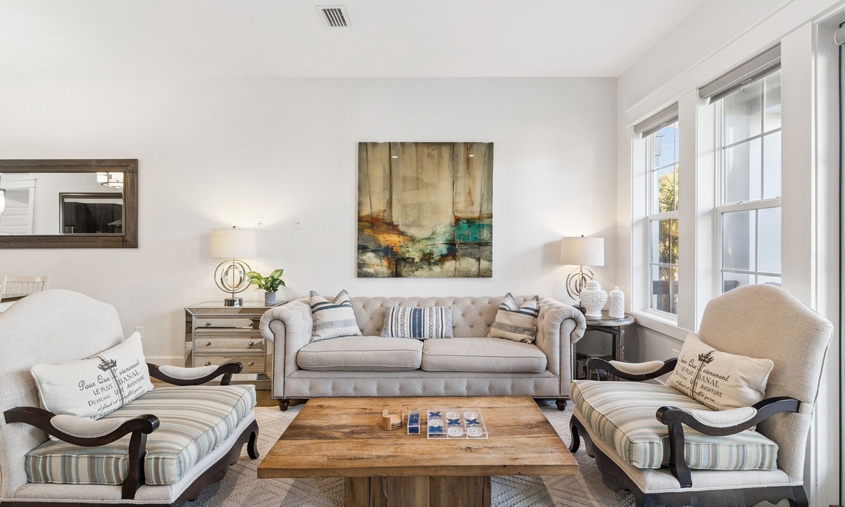 Step into the coastal elegance of Ca*SEA*ta, where open-concept living areas offer the perfect space to relax and connect. The second-floor main living area features plush seating and access to double balconies for tranquil outdoor moments.