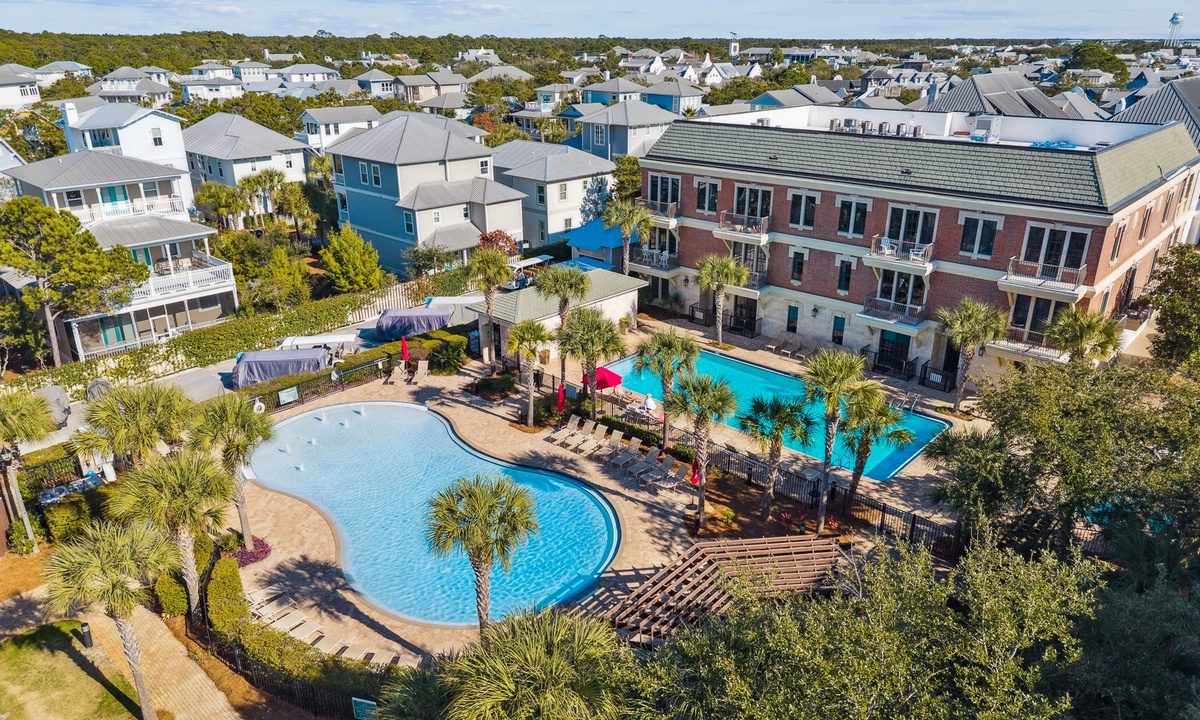 Right between Rosemary and Alys beach. Easy walking distance to three beach town restaurants and shops. 30 second walk to the kids pool and adult pool (heated). If we forgot anything thing, Seacrest Sundries was steps away. Everything you need ( Starbucks, beach tram, playgrounds, Mexican food, Playa Bowls, La Crema, George’s, etc.) was 1-15 minute walk. The bikes made it easy to get around, rode to the Hub for lunch and back. Easily sleeps 12, 14 if you have kids. Beds were comfy, house was clean, kitchen ware was available to make breakfast and some dinners. Definitely would stay here again.- Anonymous U , Posted: