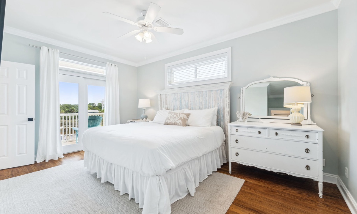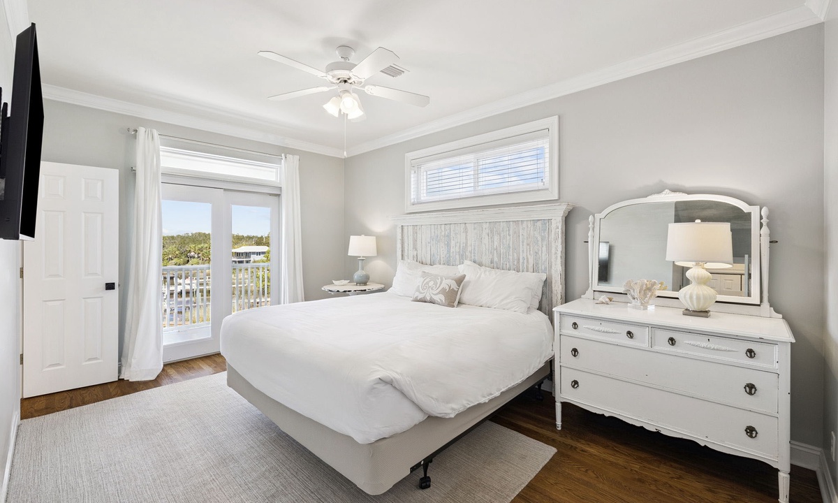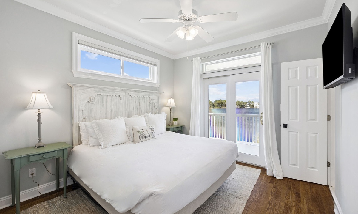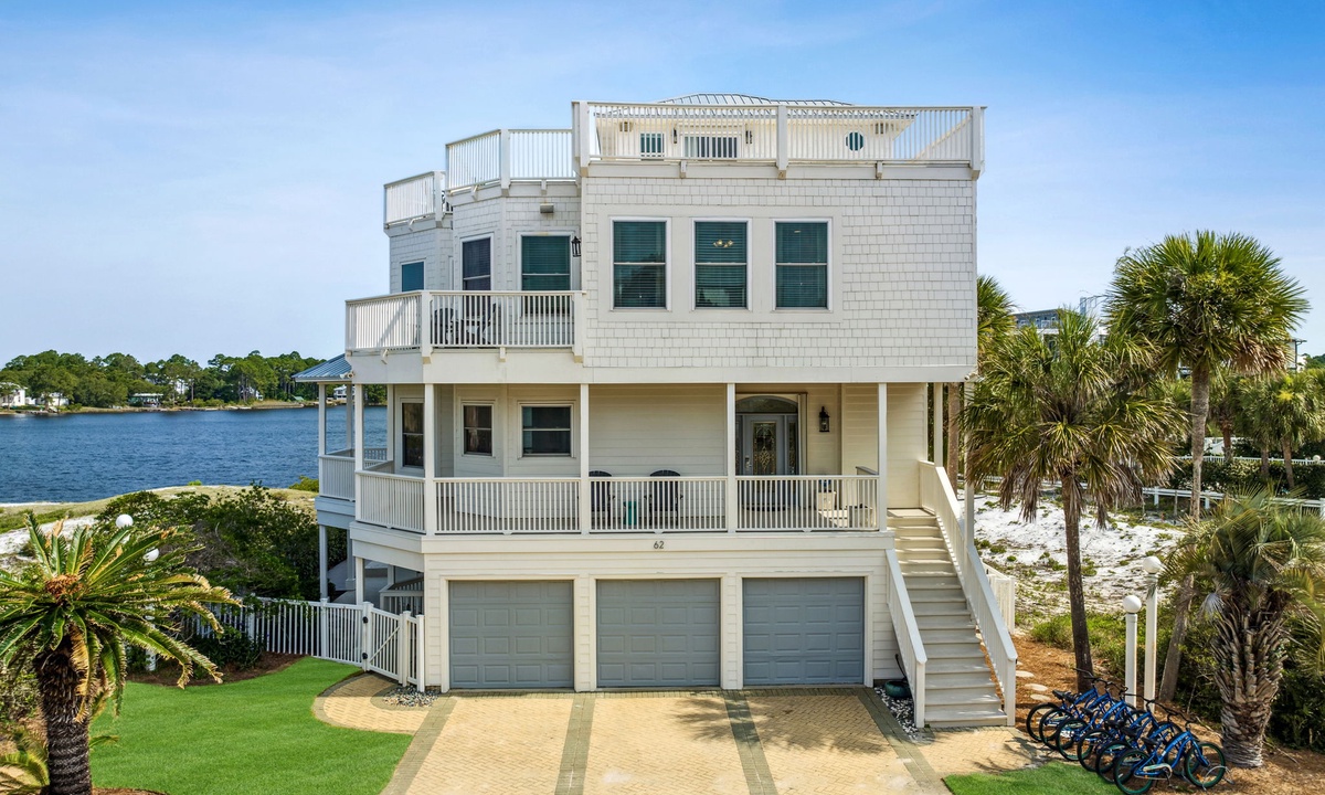In September, I vacationed with a large group and the accommodations were superb. There are many bedrooms, and even more balconies and porches with beautiful views of the beach and lake throughout. The modern kitchen opens to a large dining space and beautiful living room. The bedrooms are also roomy with very comfortable mattresses and bedding in each. This home sits in a quiet area but is located between nearby Grayton Beach and Rosemary Beach. One can bike or take short drives to enjoy shopping, great restaurants, open markets and more in Seagrove and in these other fun beach towns. Vacationing at Dock ‘N Dune is peaceful, relaxing, private and in a great location for biking, fishing, paddle boarding sunbathing and more! The home is beautiful, and I hope to return and to stay even longer next time.- Lisa L from Baton Rouge, LA, Posted:
