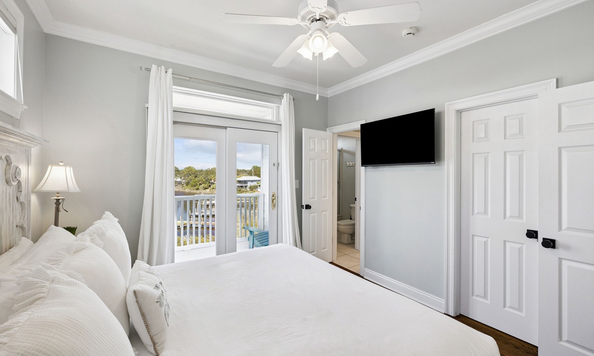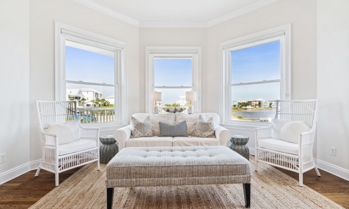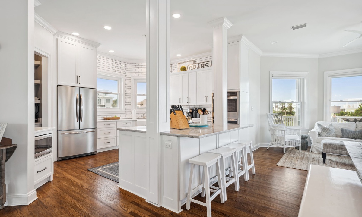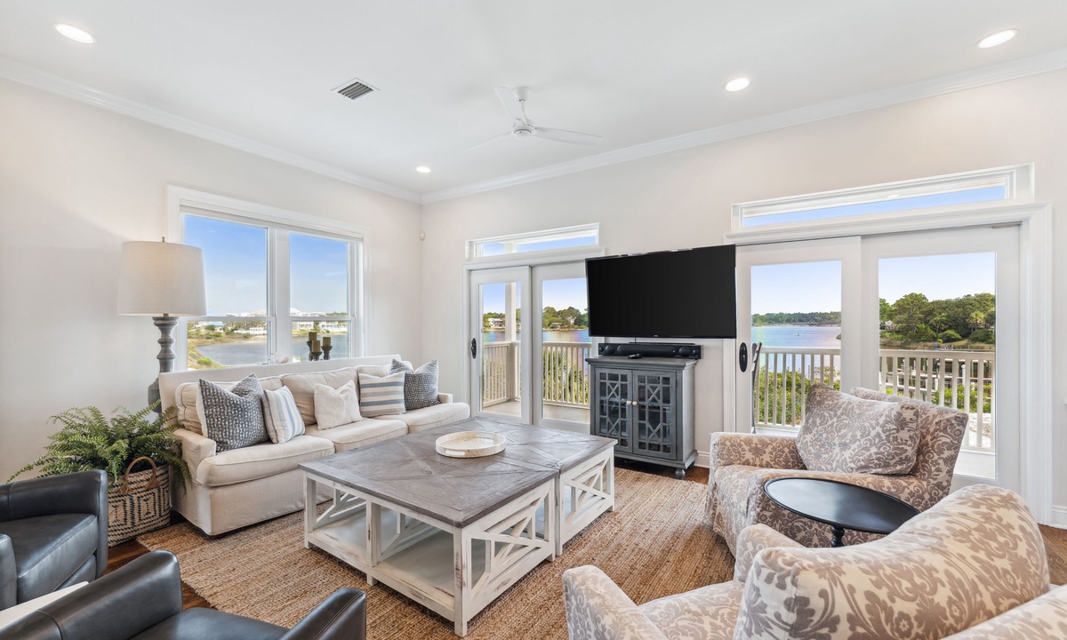 In September, I vacationed with a large group and the accommodations were superb. There are many bedrooms, and even more balconies and porches with beautiful views of the beach and lake throughout. The modern kitchen opens to a large dining space and beautiful living room. The bedrooms are also roomy with very comfortable mattresses and bedding in each. This home sits in a quiet area but is located between nearby Grayton Beach and Rosemary Beach. One can bike or take short drives to enjoy shopping, great restaurants, open markets and more in Seagrove and in these other fun beach towns. Vacationing at Dock ‘N Dune is peaceful, relaxing, private and in a great location for biking, fishing, paddle boarding sunbathing and more! The home is beautiful, and I hope to return and to stay even longer next time.- Lisa L from Baton Rouge, LA, Posted: