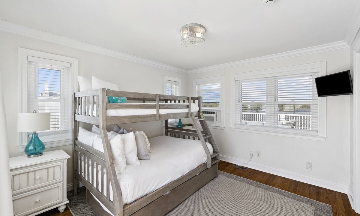 Our family of six stayed here last summer with my parents and another family of four and could not have been more pleased with the house. We had plenty of space so that we were not on top of each other, and the kitchen was well appointed with an adjoining dining room and living area with plenty of seating for all of us to gather for meals. The view of the lake and the sunset from the top deck was amazing, and beach access was a short, easy walk. There was plenty of dining and shopping nearby that was accessible in under ten minutes by car or bike. With four grade school kids, we love to vacation with other families and this is a house that has everything we needed to be able to do that. We would absolutely stay here again.