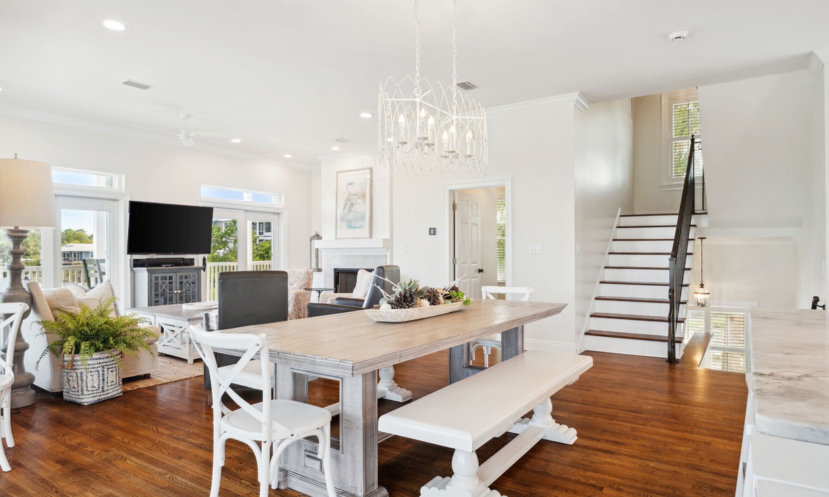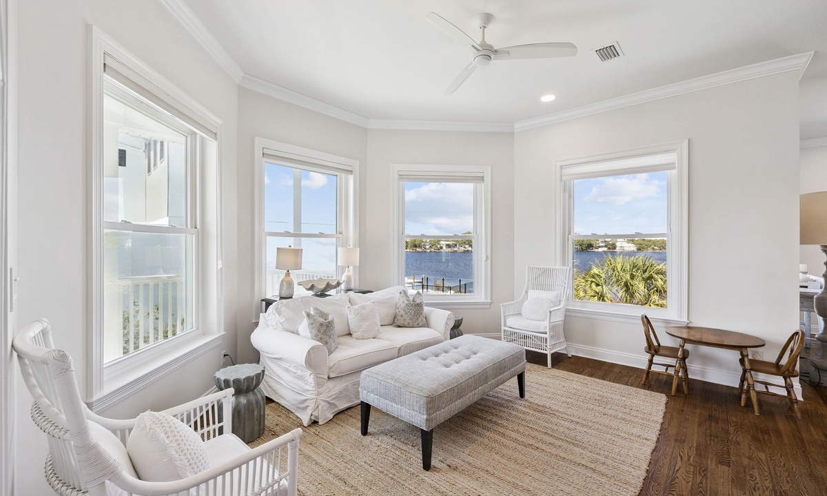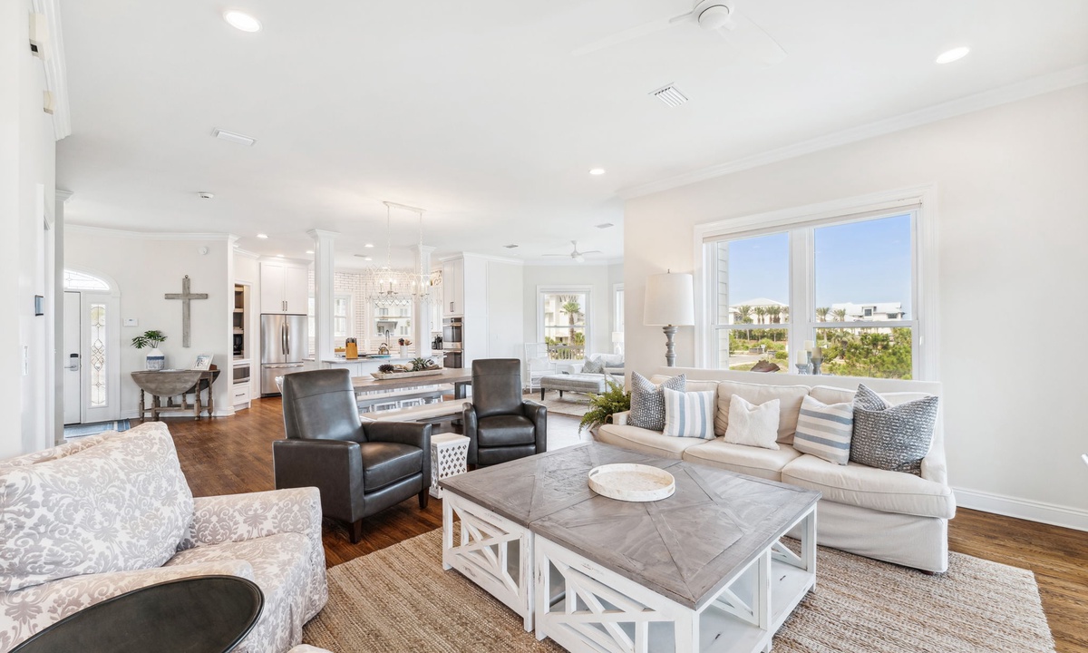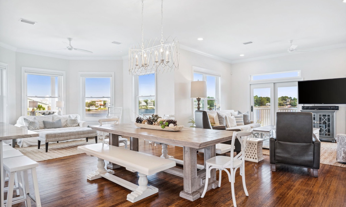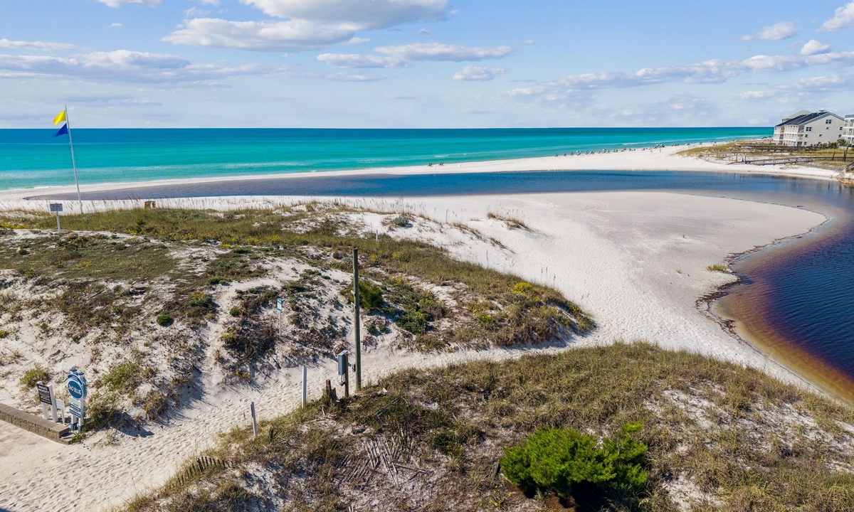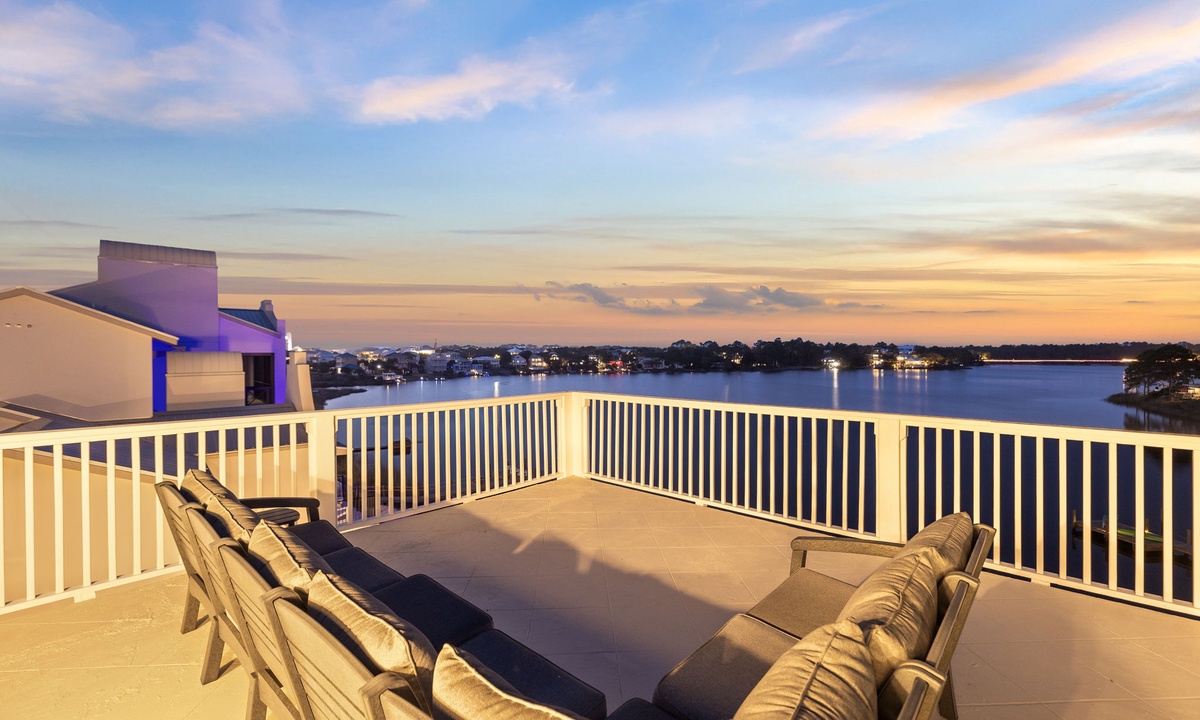 This beautiful home in Santa Rosa checks off all the boxes for a peaceful and inviting retreat with family and friends. When you walk though the front entrance , the large open gathering area and kitchen are illuminated with all the natural light . So many windows with vast sunny water views from every direction . The kitchen is stocked really well with plenty of dining and countertop seating.The decor is modern and warm and perfect for gathering . The large bedrooms are very comfortable crisp and clean . What’s unique about this property , is the direct access to the lake right out the back doors . Paddle boards and kayaks can be navigated through the waterway directly to the gulf waters and beach . Otherwise , the walk from the front porch to the ocean takes only a few minutes .Tucked away oversized bunk room for younger guests appeals to many . The very large primary bedroom suite offers privacy , and the spacious rooftop sunsets are stunning . Dock ‘ N Dune ‘s amenities and beautiful location make for a restful and exhilarating beach vacation .- Anonymous U , Posted: