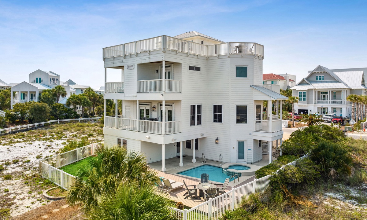 Great option for your next beach vacation! This home is very special in that the front of the home has beach access and the back of the home is on a fresh water lake. It even has its own dock! Beautifully maintained and thoughtfully updated, this lovely home is very comfortable and relaxing. One of my favorite things to do is to watch the sun set on the roof top. Its stunning! Another is to wade in the sand and water where the Gulf and the lake separate- it s just so neat! Other amenities include a private pool and hot tub. There are lots of bedrooms and sleeping spaces accommodate a large group. The Owners have taken great care in equipping and furnishing the home to make it feel cozy and beautiful. Once you come stay, you will want to come back again and again. There is just nothing else quite like it.- Anonymous U , Posted:
