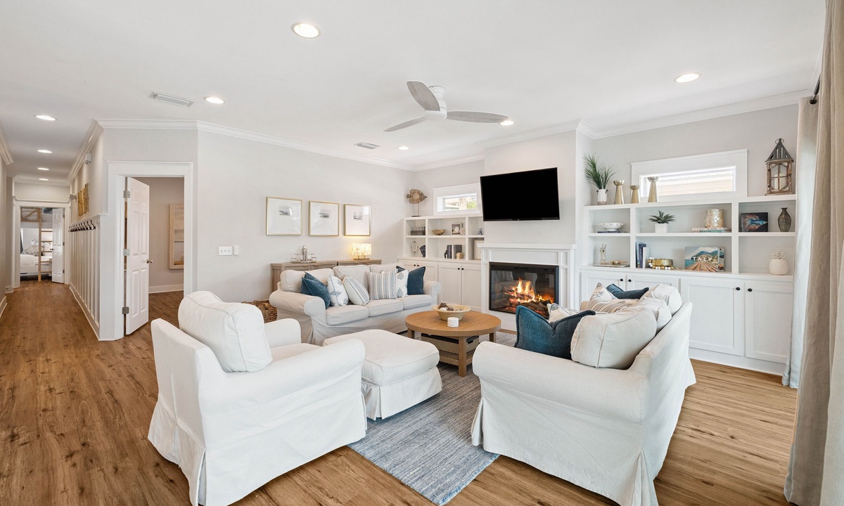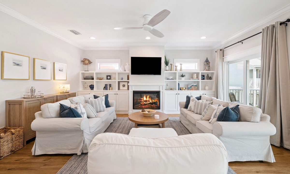 *** HIGHLIGHTS ***Step inside to an open, light-filled living space where coastal charm blends with modern convenience. The living room invites you to unwind with comfortable seating, a flat-screen TV, and a fireplace for cozy nights. Sliding glass doors open to the spacious balcony with seating and sweeping Gulf views—perfect for relaxing any time of day.