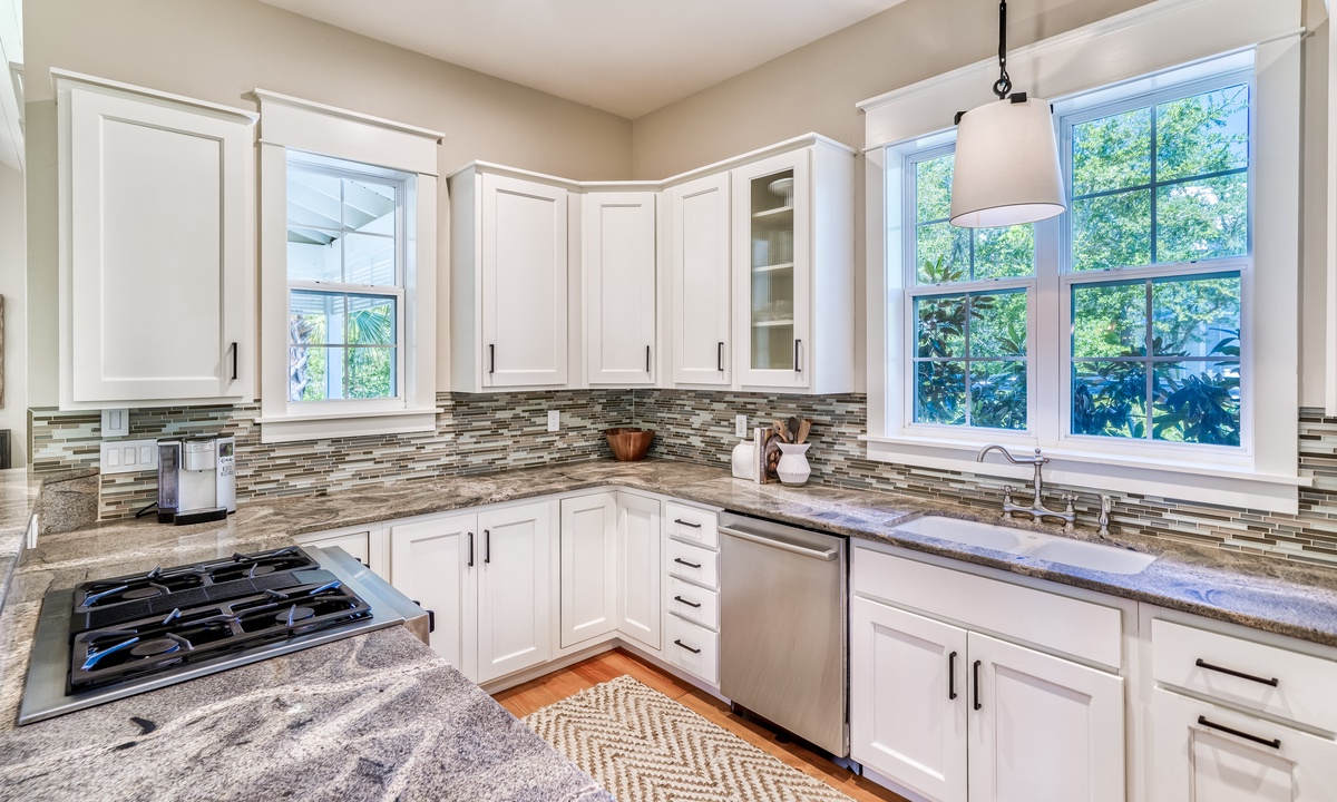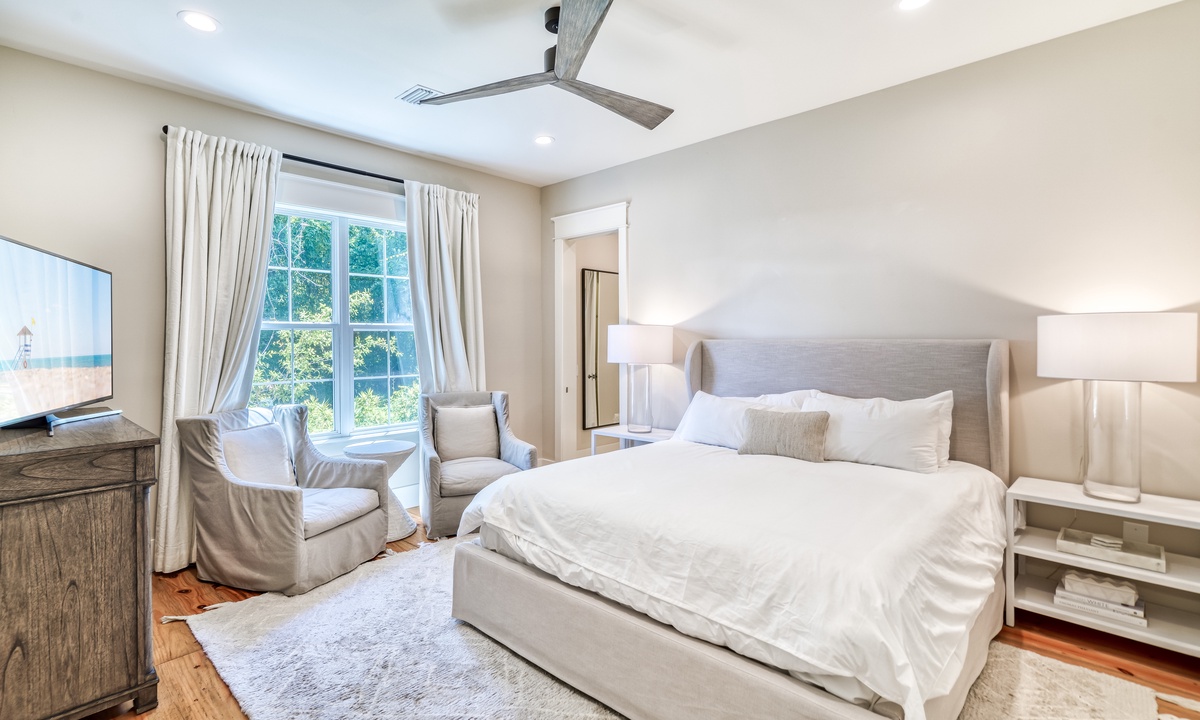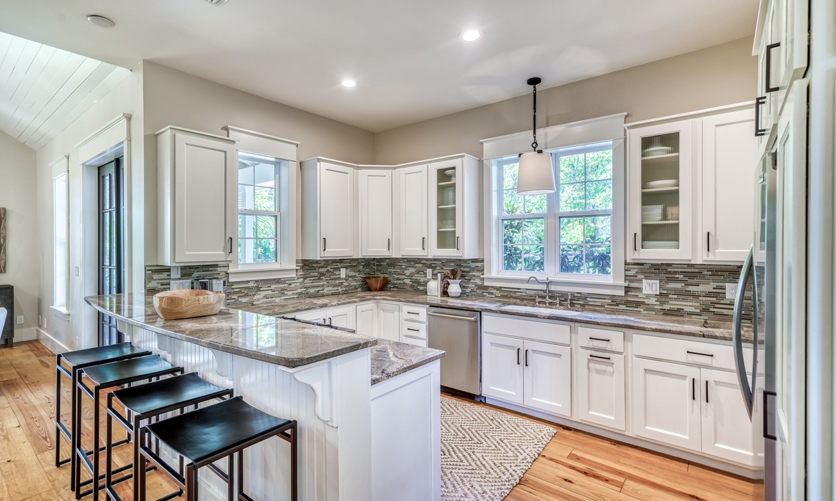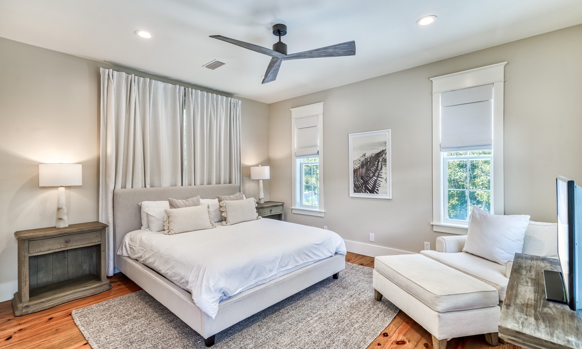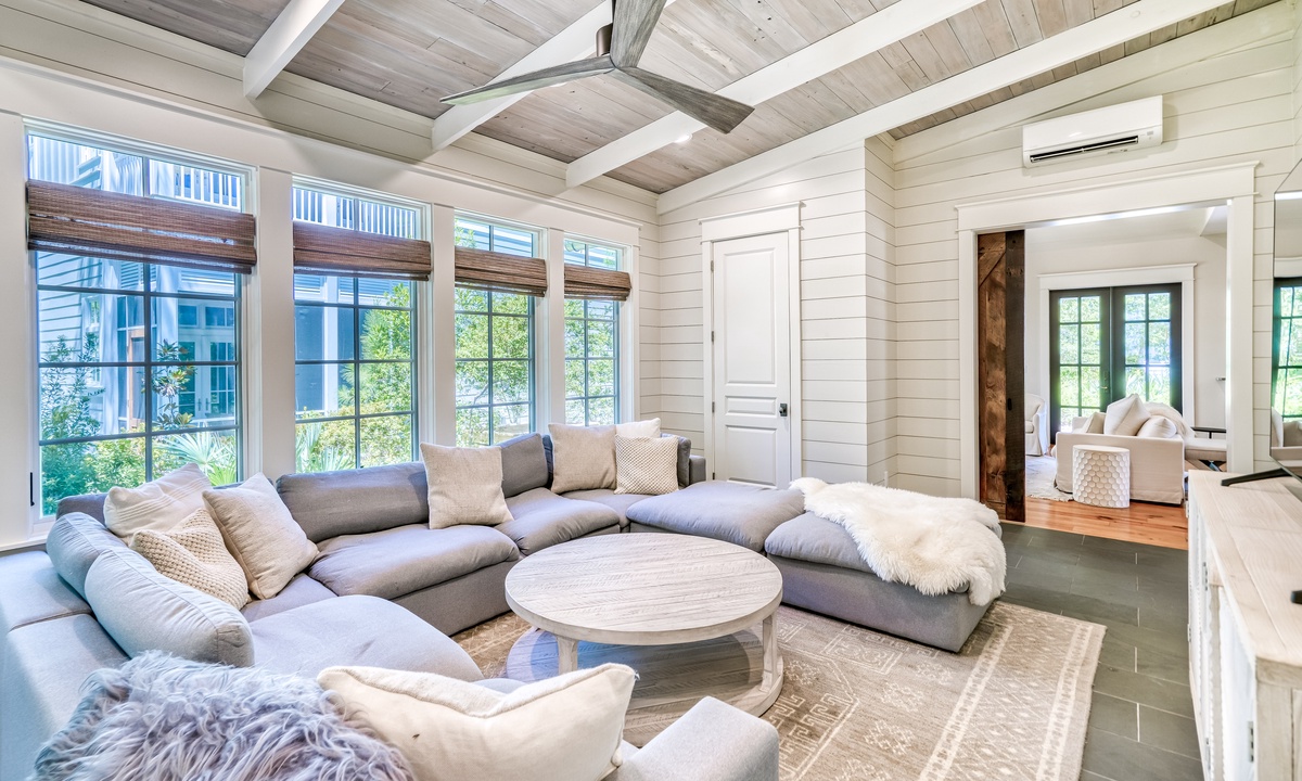 ⭐ "The layout, decor, and location of this home have made it one of our all-time favorites on 30A! The family room and kitchen area were perfect for connecting, and management was excellent!" – Eryn S.The 2 living spaces are thoughtfully crafted to blend comfort with elegance. Featuring an open-concept design, soaring vaulted ceilings, and stunning wide plank hardwood floors, every detail exudes sophistication and warmth. From the moment you step inside, you'll feel an inviting charm that makes you feel at home.