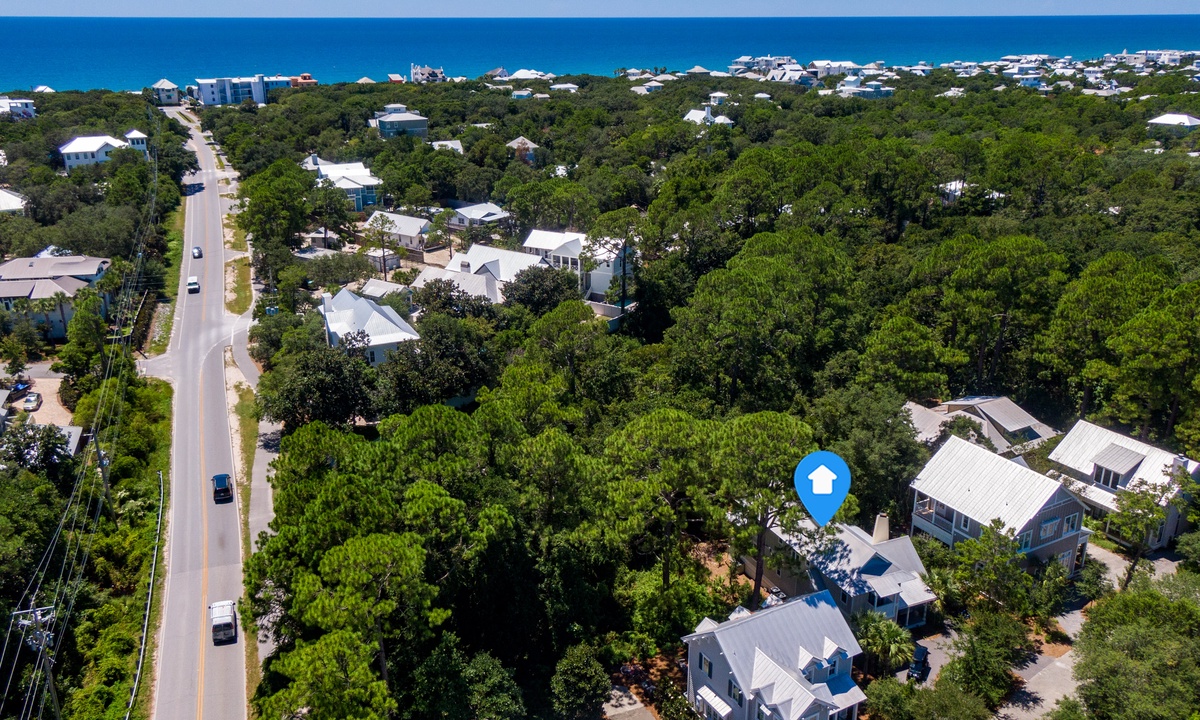 This is a great home, close enough to the center of Seaside and the beach to easily bike or walk there, but just far enough away to avoid the traffic on 30A and busier times in Seaside. The house is also just far enough away from 395 that you don't hear the traffic on that road, which can be loud. We loved the two living rooms -- The TV room in particular was great for the kids to relax in and have their own space. The bedrooms are perfectly laid out, with the master on the bottom and two spacious rooms upstairs...plus 4 bathrooms (one in each bedroom plus an extra full bath downstairs. The kitchen had plenty of pots, pans, and cooking essentials. 4 bikes are included, as well as a few beach chairs. It would have been great to have had beach towels included, but other than that, it was a perfect stay -- one of our favorites in Seaside so far!