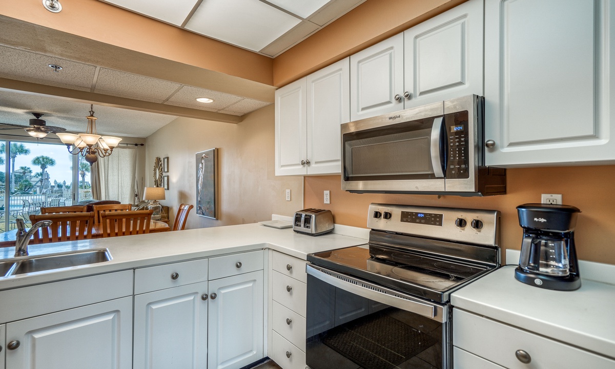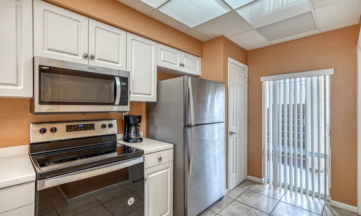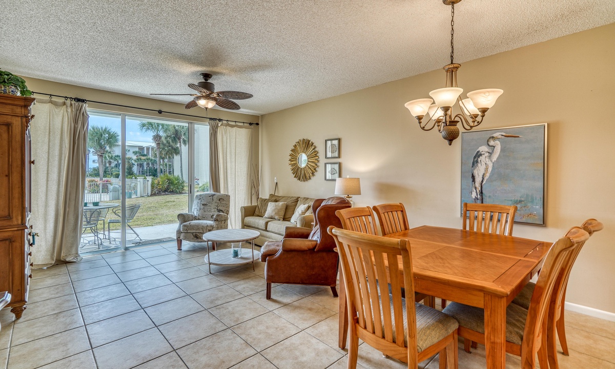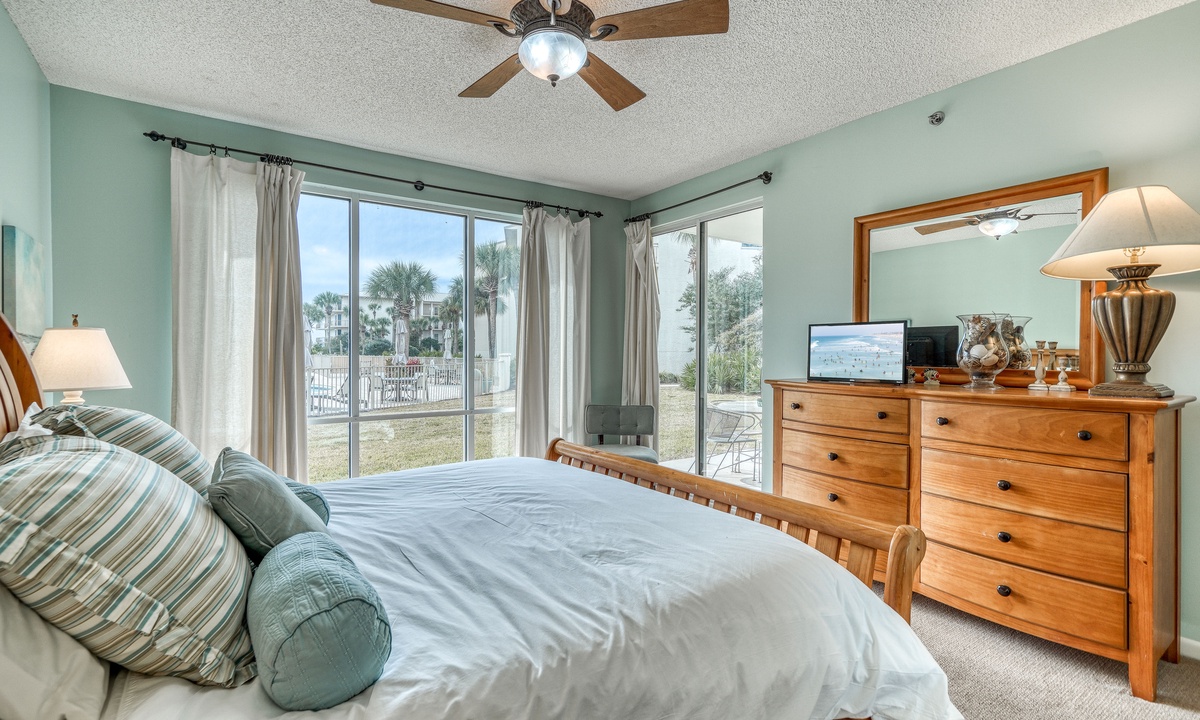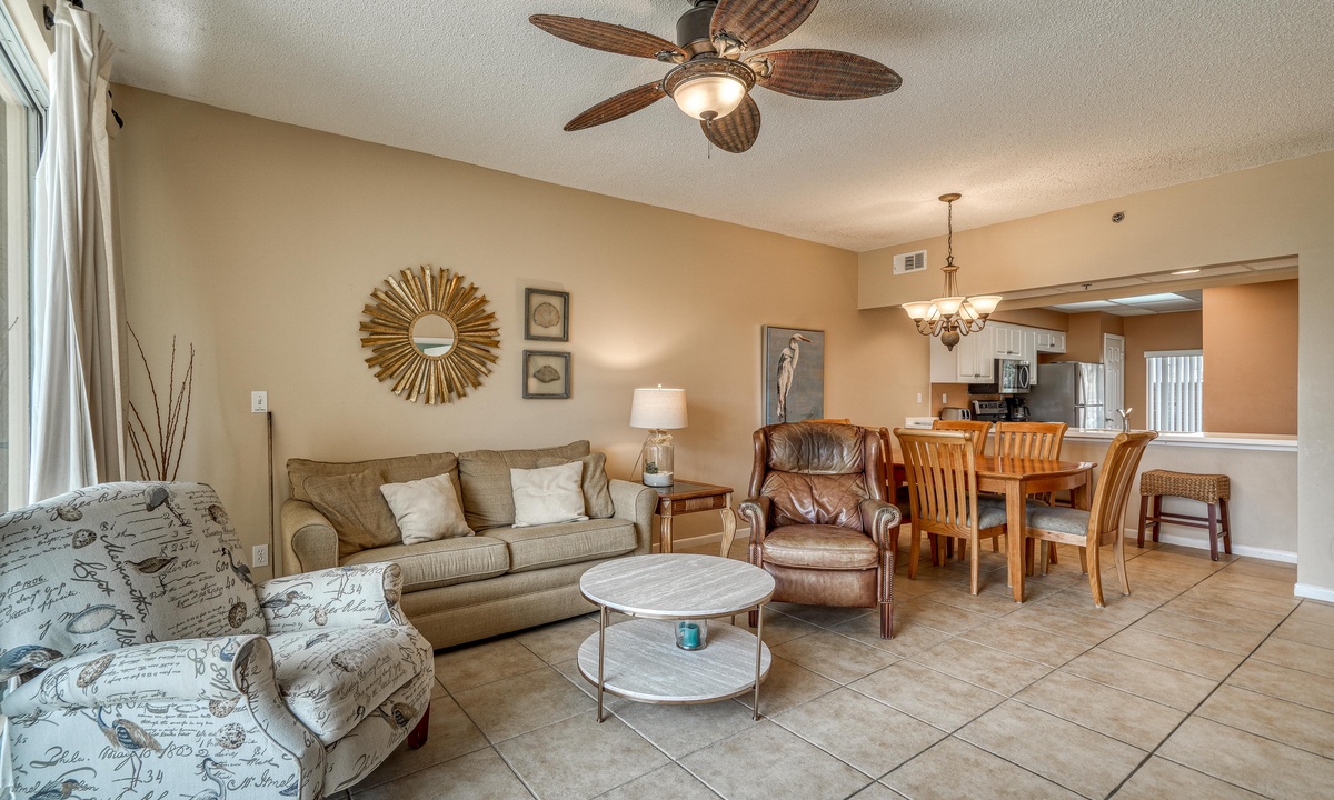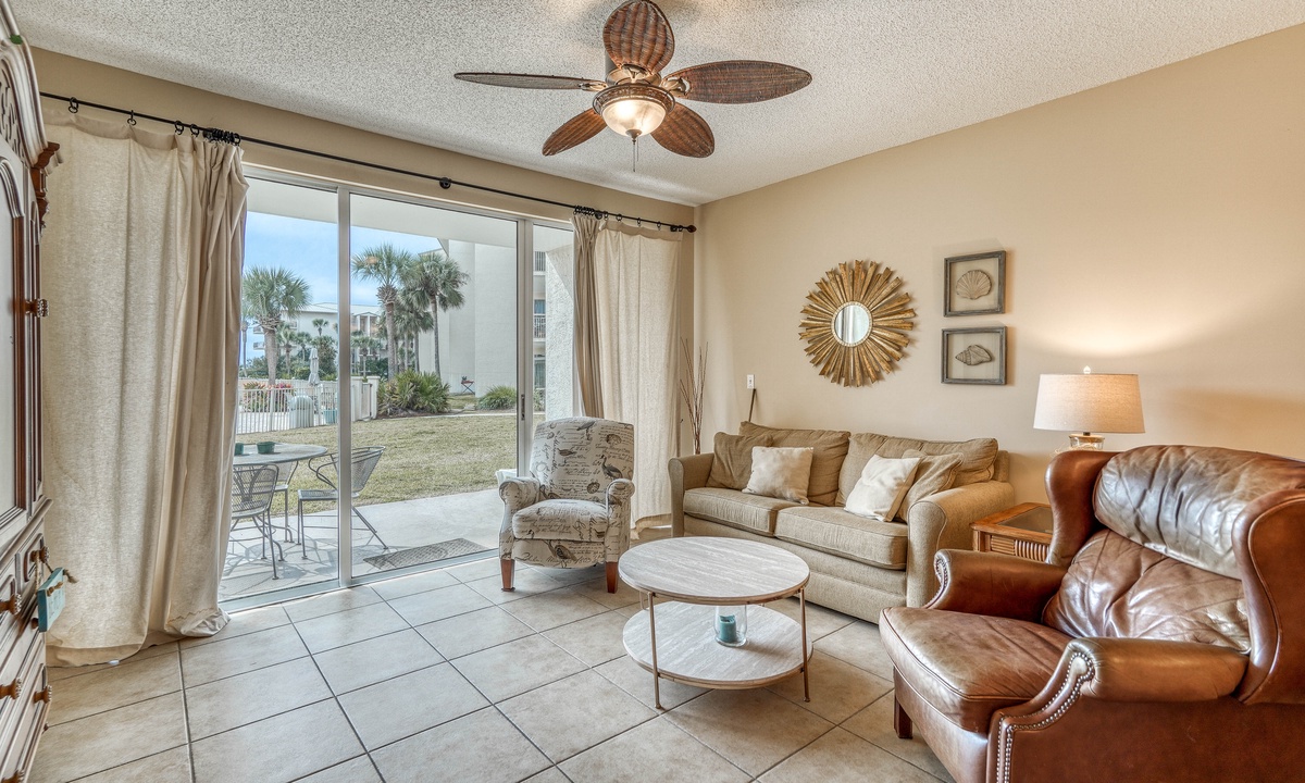 ⭐"Absolutely perfect! The location and property were outstanding. The condo was spotless, well-maintained, and just steps away from everything we needed!" – AidaBright and beachy, the living space features serene hues and stylish coastal décor. The open floor plan flows seamlessly between the living area, dining room, and outdoor patio. Large glass windows frame the sparkling pool just beyond your door, inviting you to relax and enjoy the tropical ambiance.