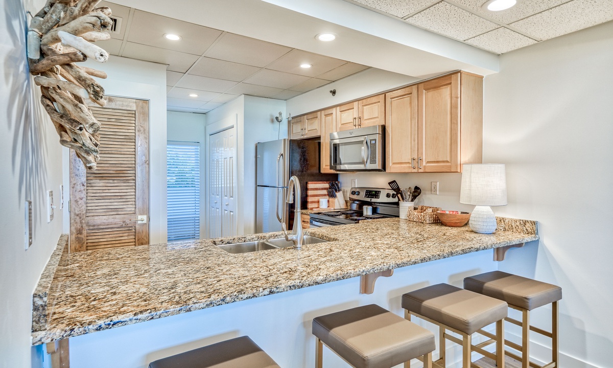 My family loved staying at this unit. The unit is so beautiful with very lovely decorations. Everything was so cozy and comfortable. We loved being on the first floor and able to get to the pool and beach so quickly with children. The pool was fantastic, the restaurant being on site was so handy, and the shops and restaurants were so close by. This has been our favorite spot to stay and hope to come back to this exact unit.