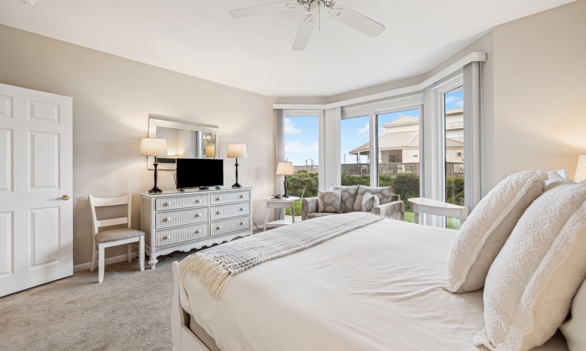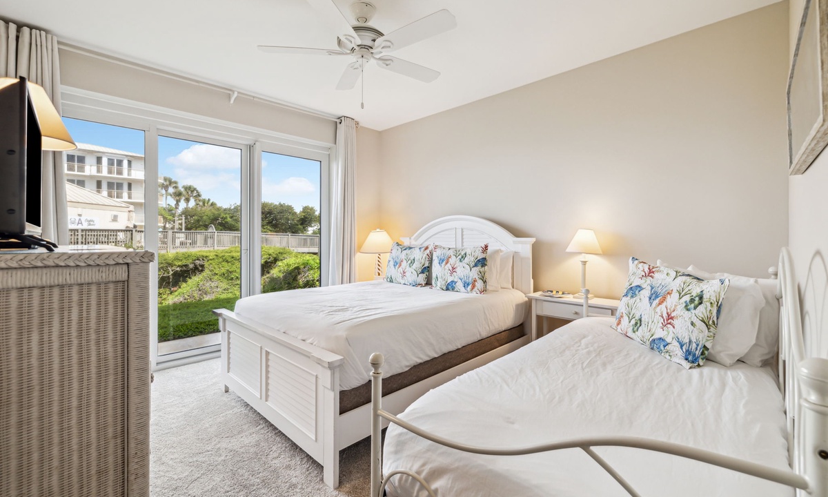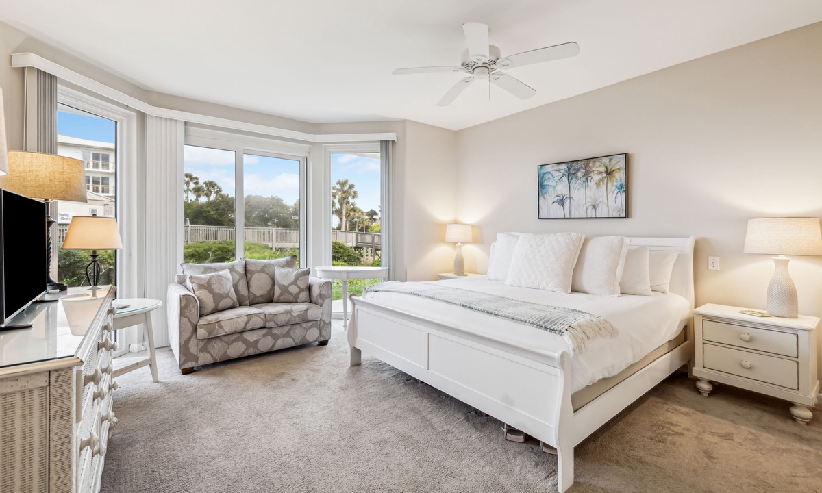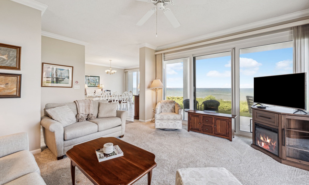 ⭐"Perfect location with easy beach access! The views were breathtaking, and we loved having everything within walking distance." – CatherineThis condo offers a bright and airy open-concept living space, perfect for unwinding after a day at the beach. The floor-to-ceiling windows provide panoramic Gulf views, and the patio opens directly to lush green spaces, perfect for kids to play while you relax.