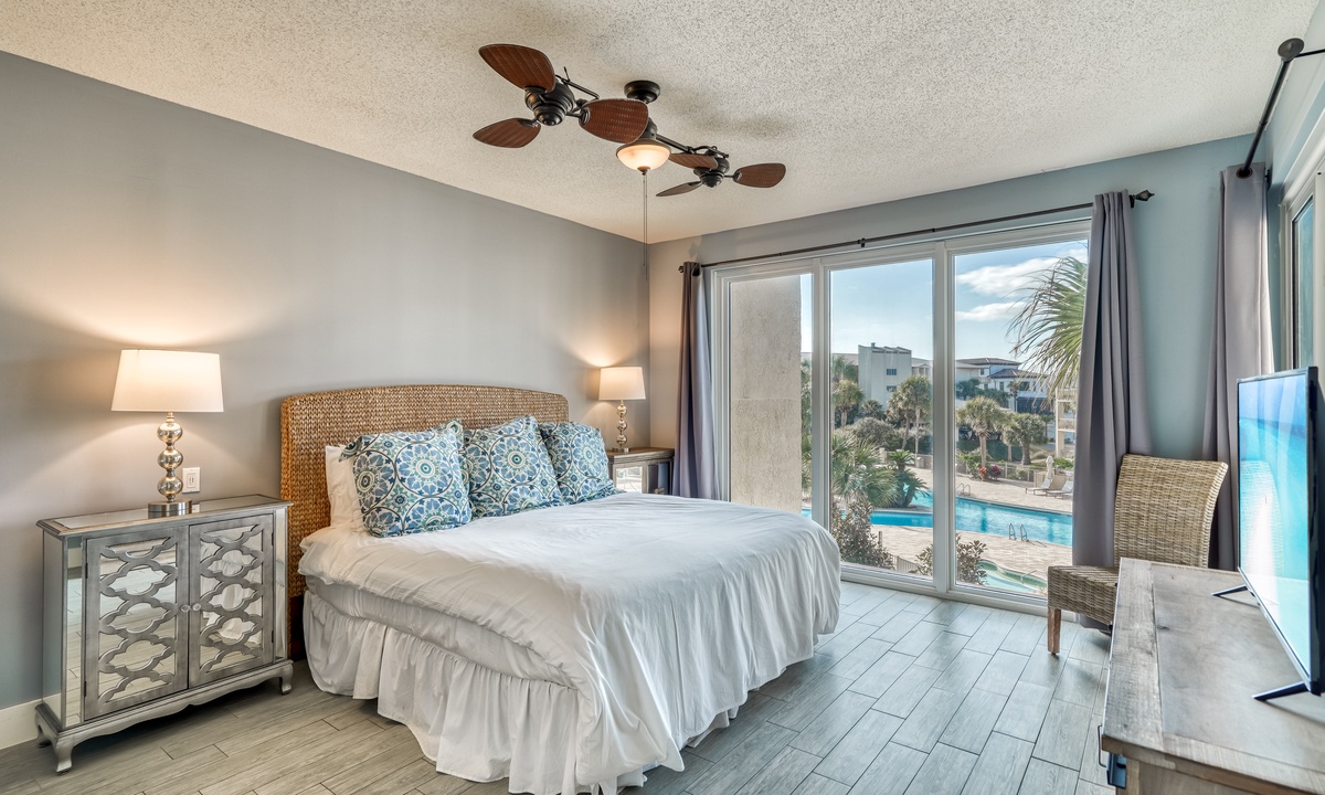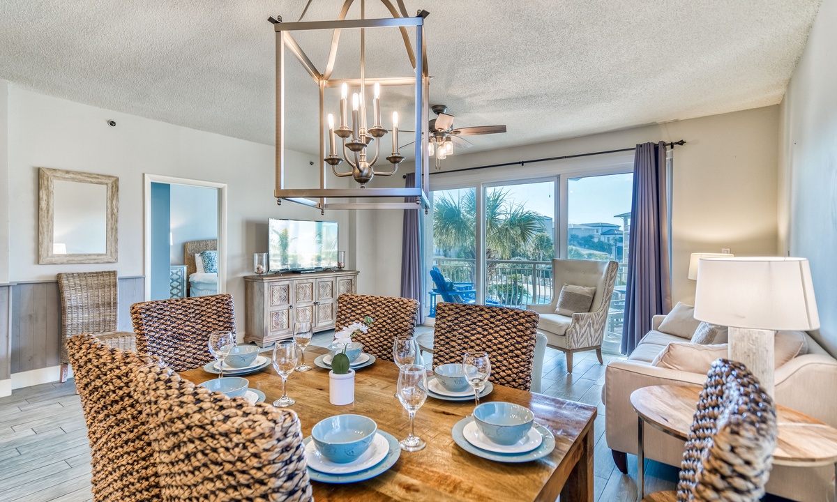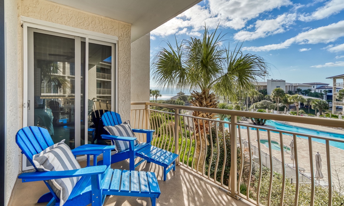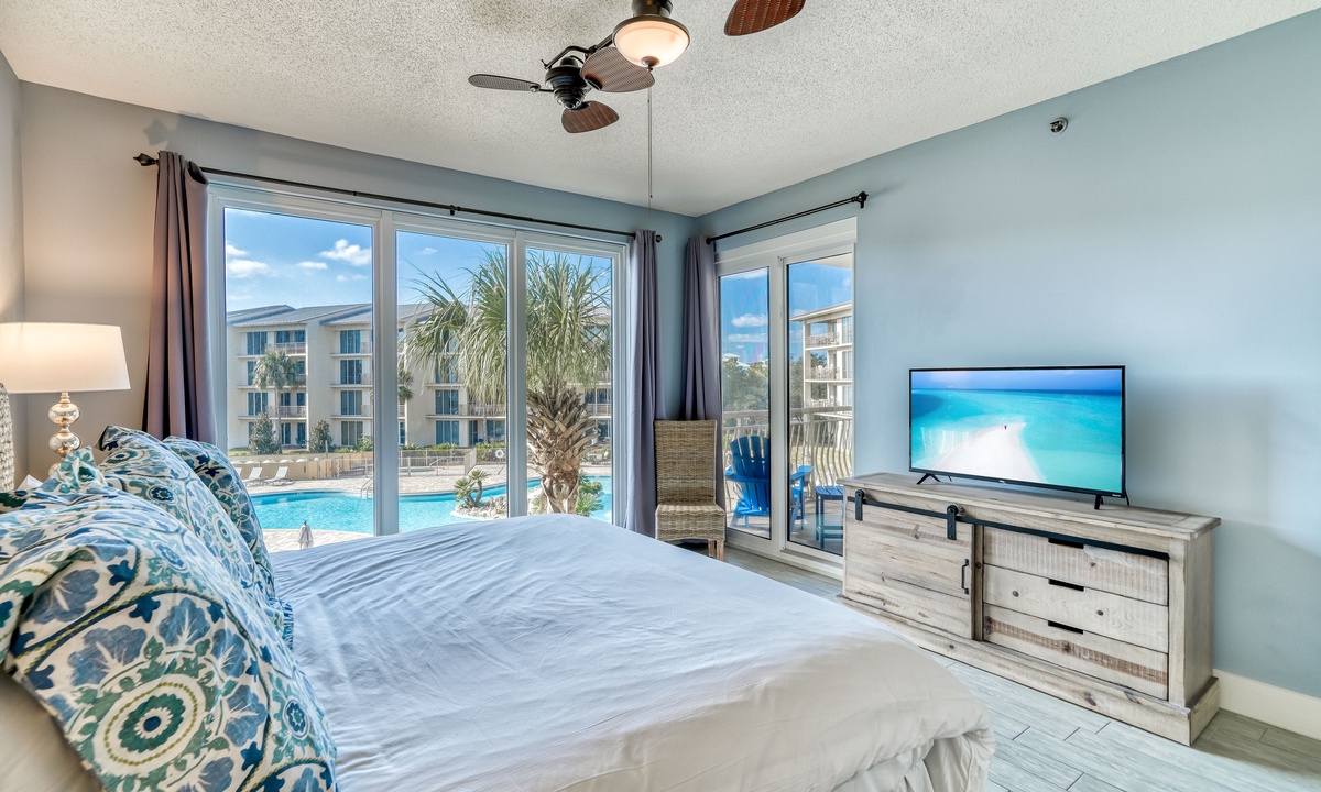 ⭐"The condo was absolutely stunning, with breathtaking views of the pool and beach. We can't wait to return!" – SandraIndulge in modern coastal elegance with open, light-filled living spaces crafted for ultimate relaxation. The living room invites you to sink into luxurious plush seating, enjoy entertainment on the flat-screen TV, or step through the sliding doors onto a private balcony. From there, take in breathtaking views of the sparkling lagoon-like pool—your perfect retreat after a sun-soaked day at the beach!
