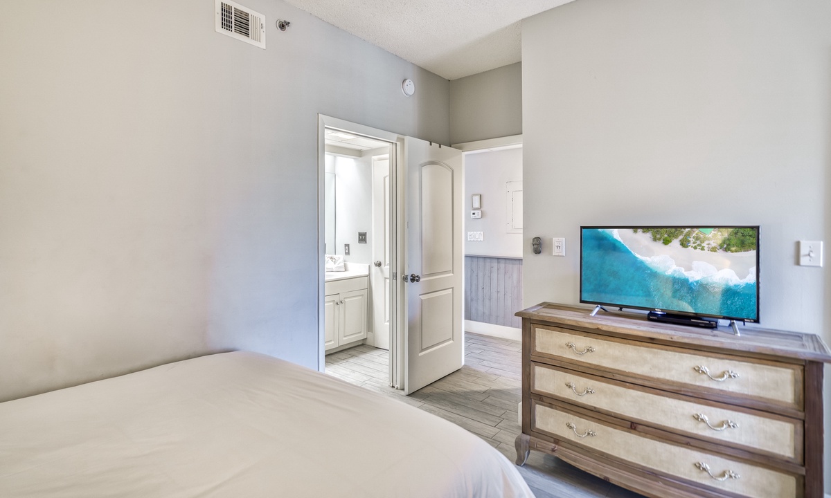 Sleep in style and comfort! Each bedroom is designed with serene, modern decor, equipped with flat-screen TVs, and plenty of storage to keep your space clutter-free.