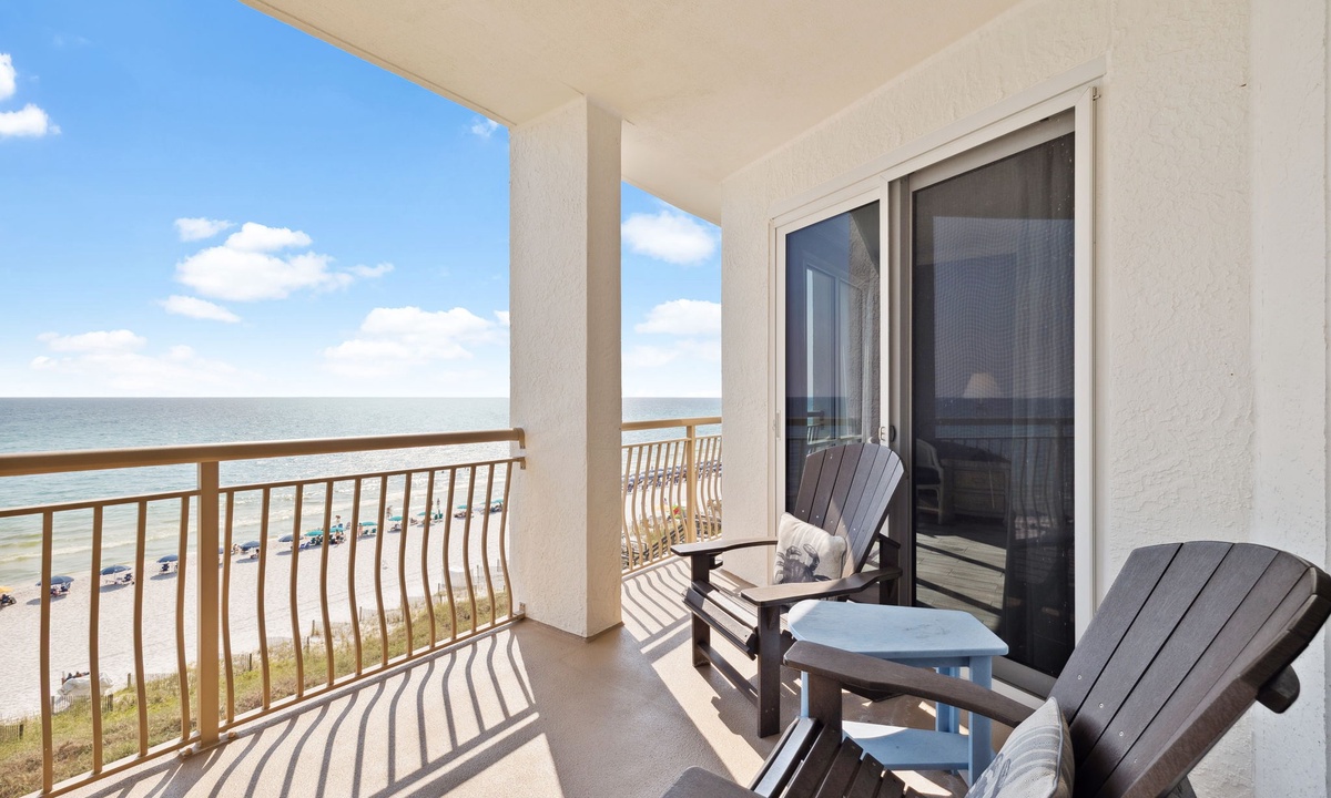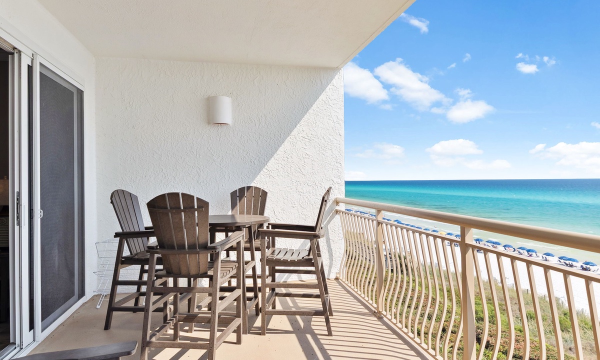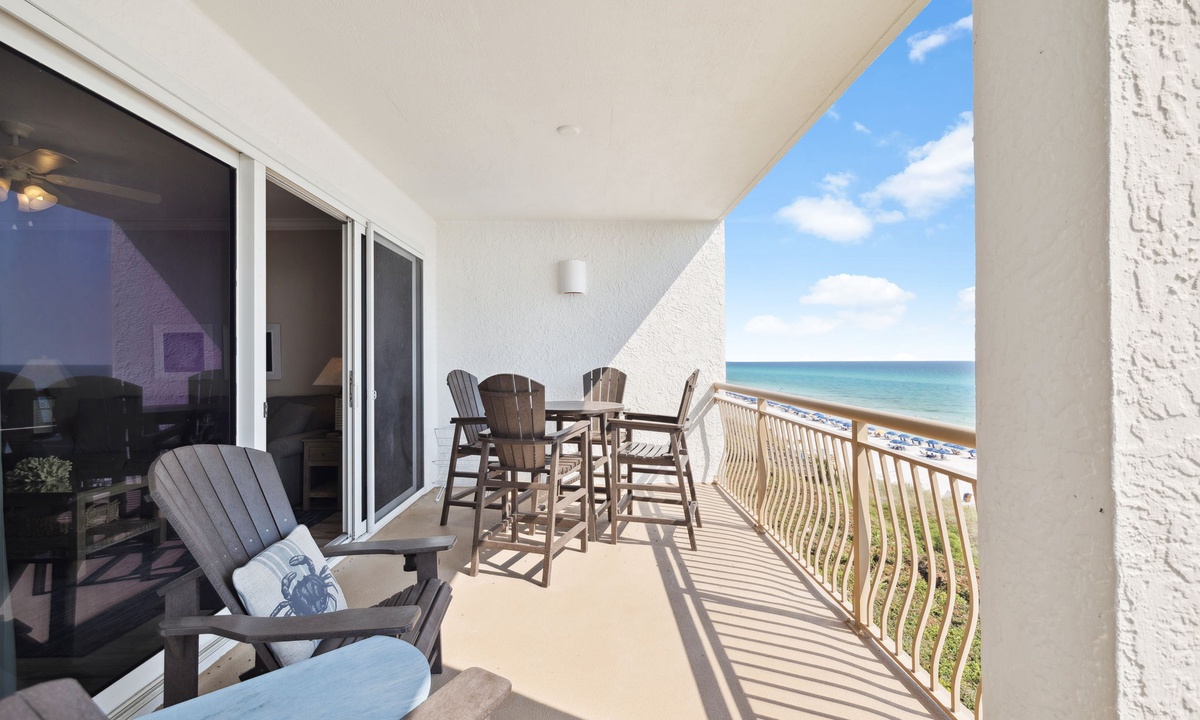 - Gulf-front balcony with dining for 4 and panoramic water views