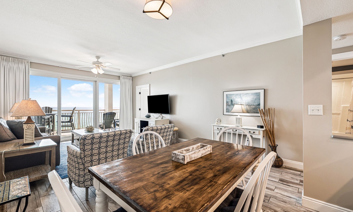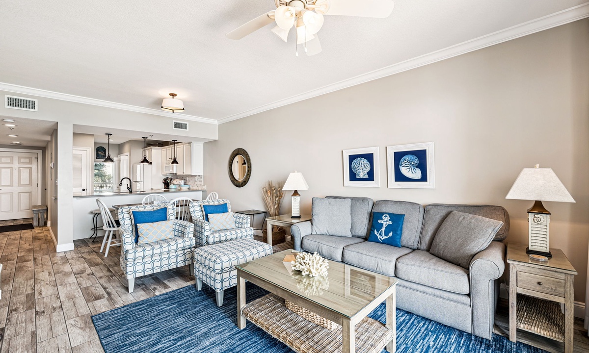 *** LIVING AREA ***Unwind in the open-concept living space where the Gulf serves as your daily backdrop. Whether you’re relaxing on the sofa or stepping onto the balcony, this is the heart of your coastal getaway.