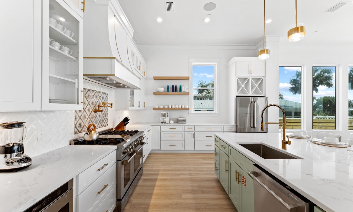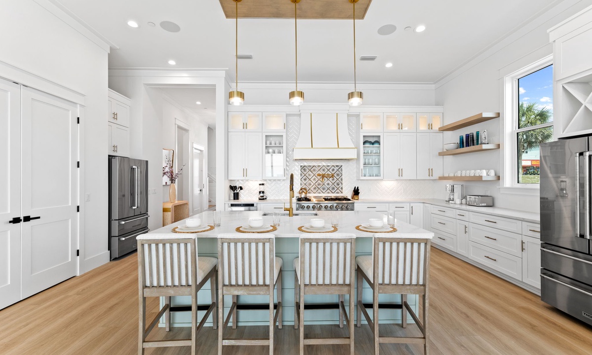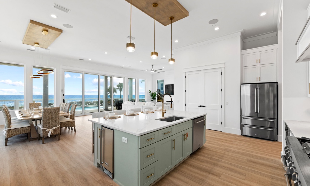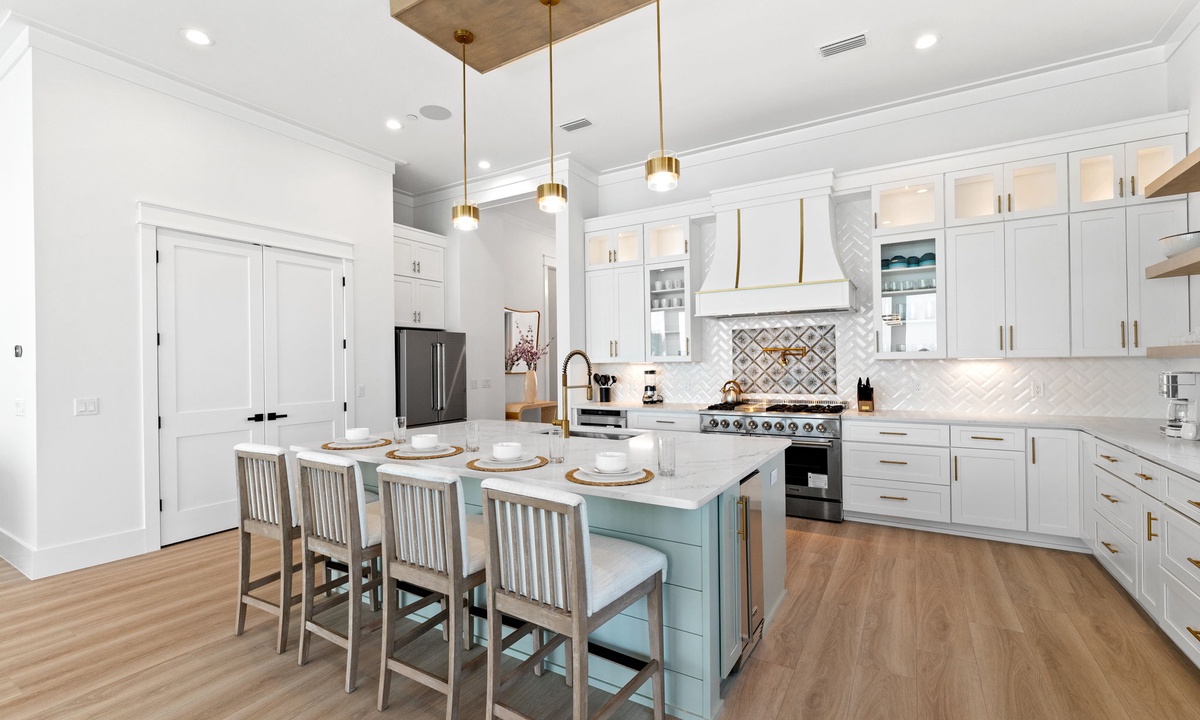 Whether you're preparing dinner for two or hosting a feast for 34, the modern chef’s kitchen has everything you need. With top-notch appliances and thoughtful details like an ice maker and double refrigerators, this kitchen was made with convenience in mind.