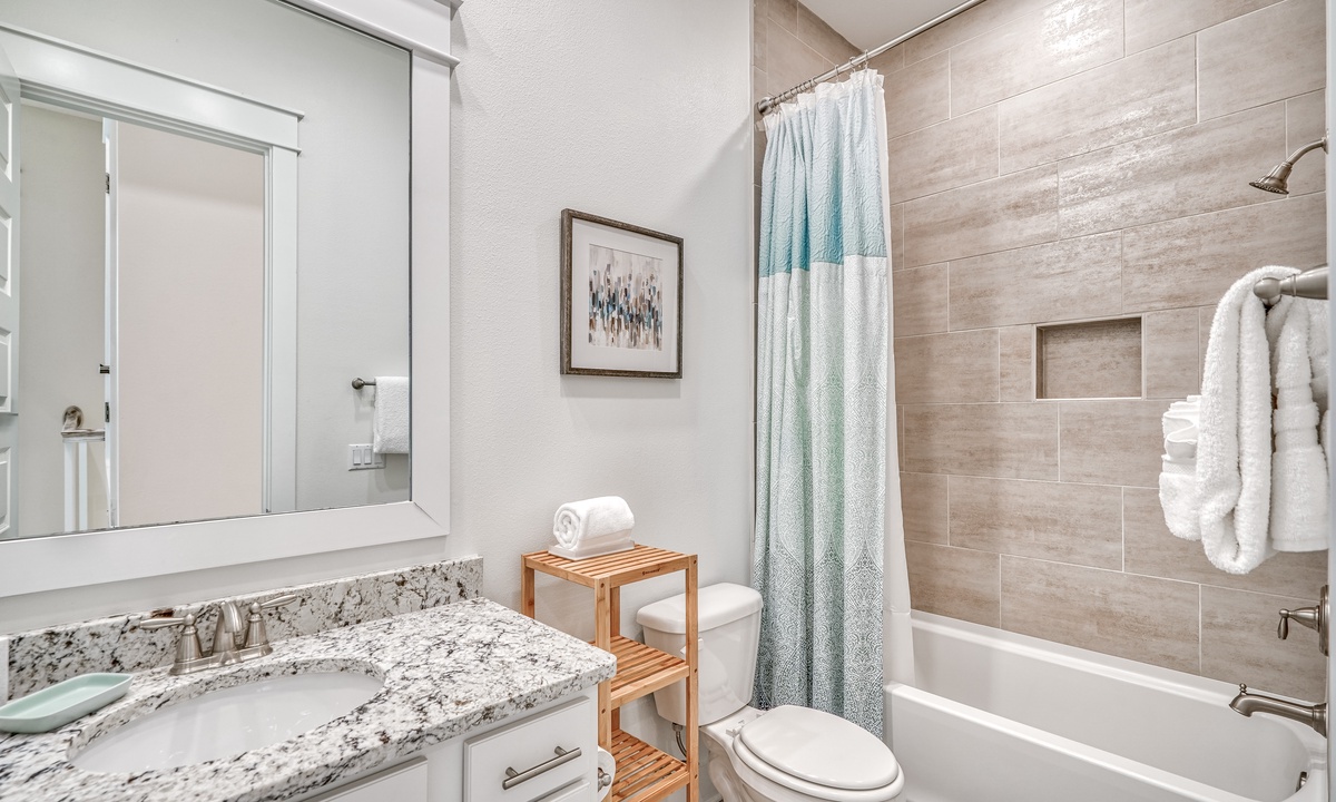 With a thoughtfully designed layout across two levels, “Just Beachin” comfortably accommodates up to 10 guests while offering a balance of privacy and shared space.