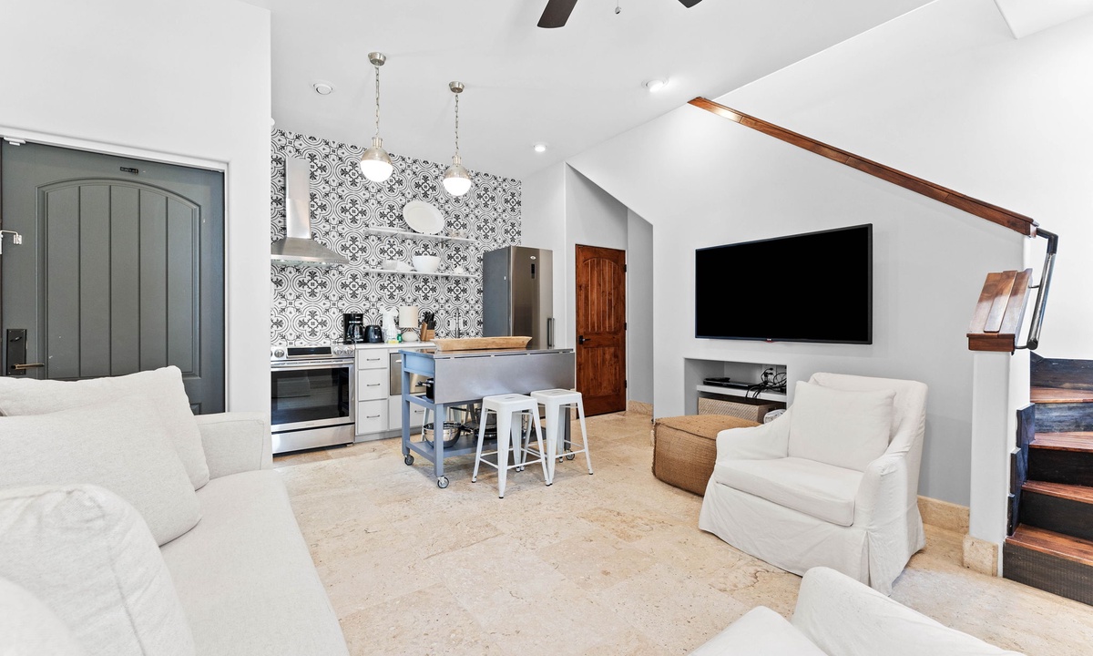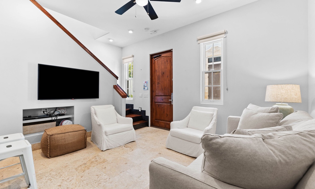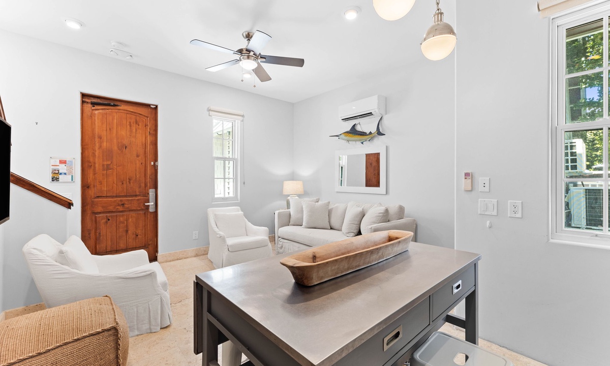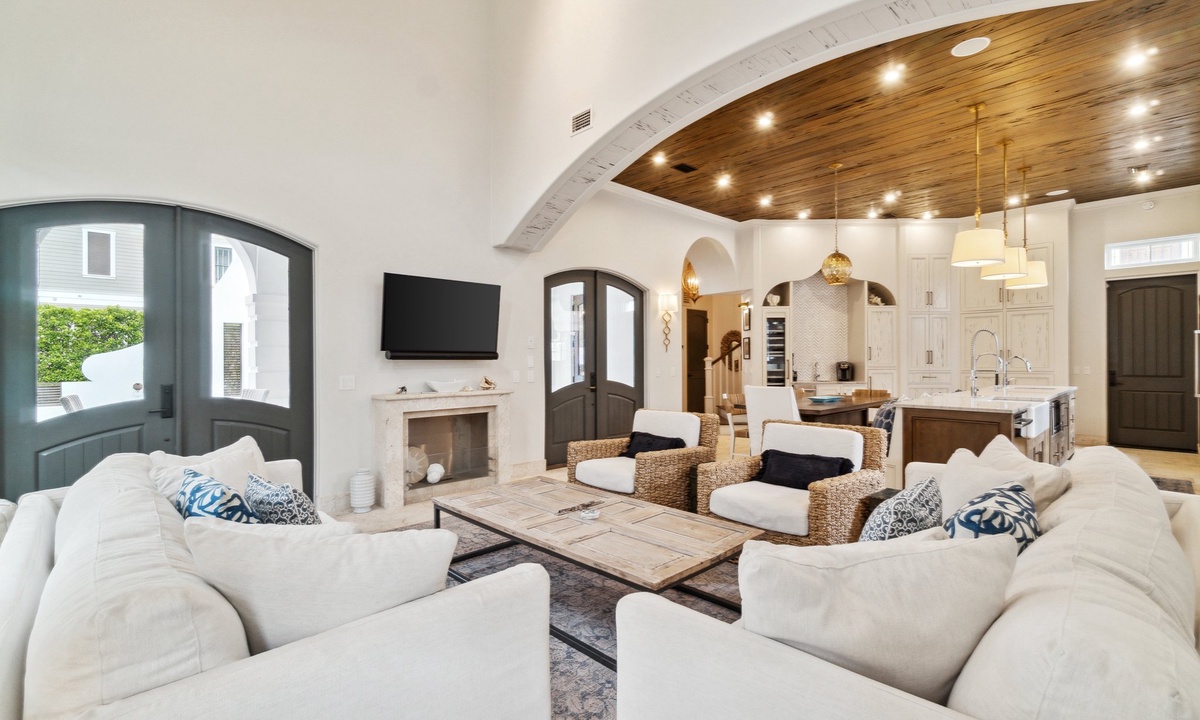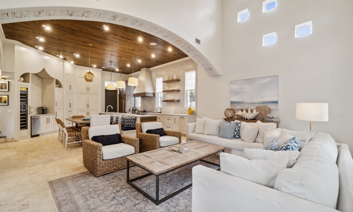*** LIVING AREA ***Indulge in luxury from the moment you step into this stunning home. The open-concept first-floor living room is a haven of relaxation and connection, featuring expansive windows that flood the space with natural light and offer stunning views of the private pool. Elegant, stylish furnishings create an inviting atmosphere where everyone can unwind in comfort. For added privacy and convenience, the charming carriage house provides an additional living space, perfect for those seeking their own retreat. Every detail is designed to elevate your stay and make you feel at home.