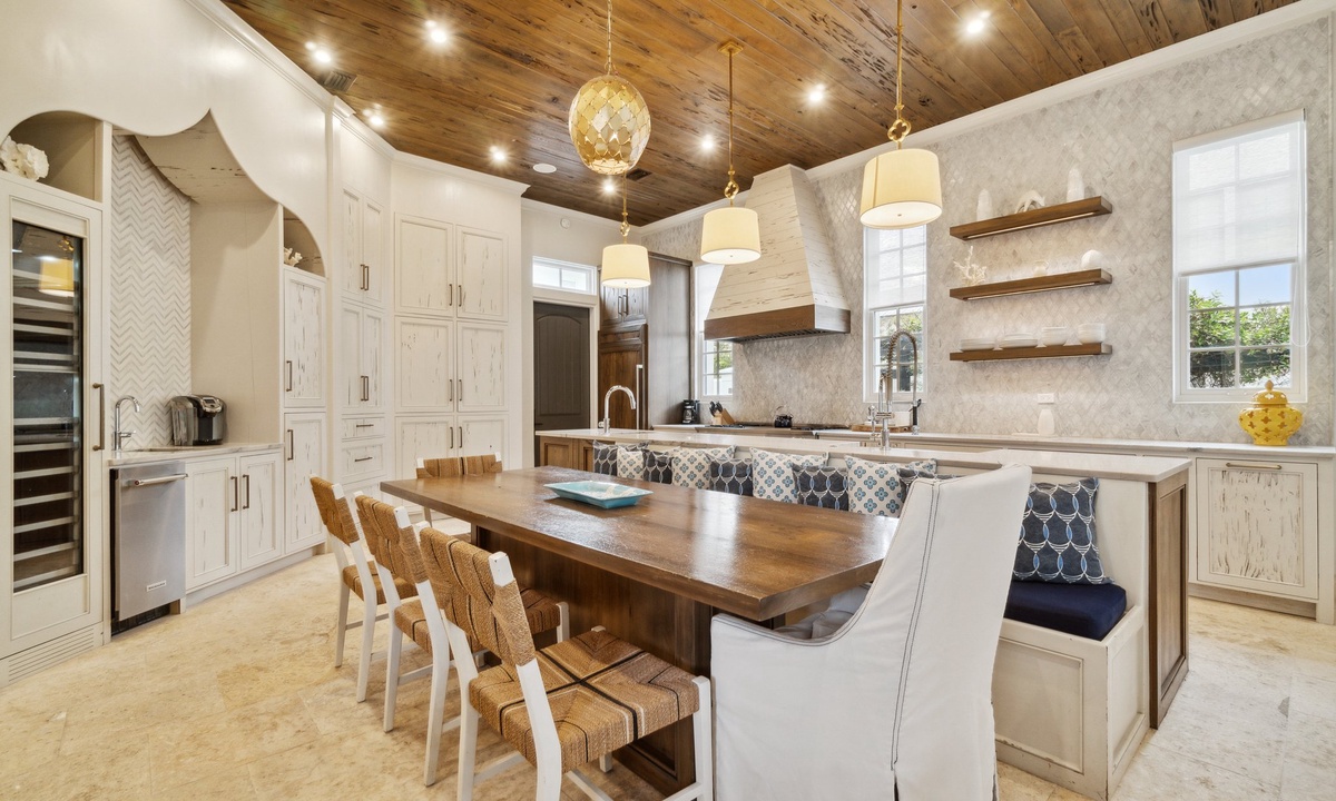 Create culinary masterpieces in the expansive, fully equipped Chef’s kitchen, complete with top-of-the-line appliances, a sleek wine fridge, and ample counter space for effortless meal prep. Savor your gourmet dishes at the elegant dining table or indulge in relaxed al fresco dining by the sparkling pool.