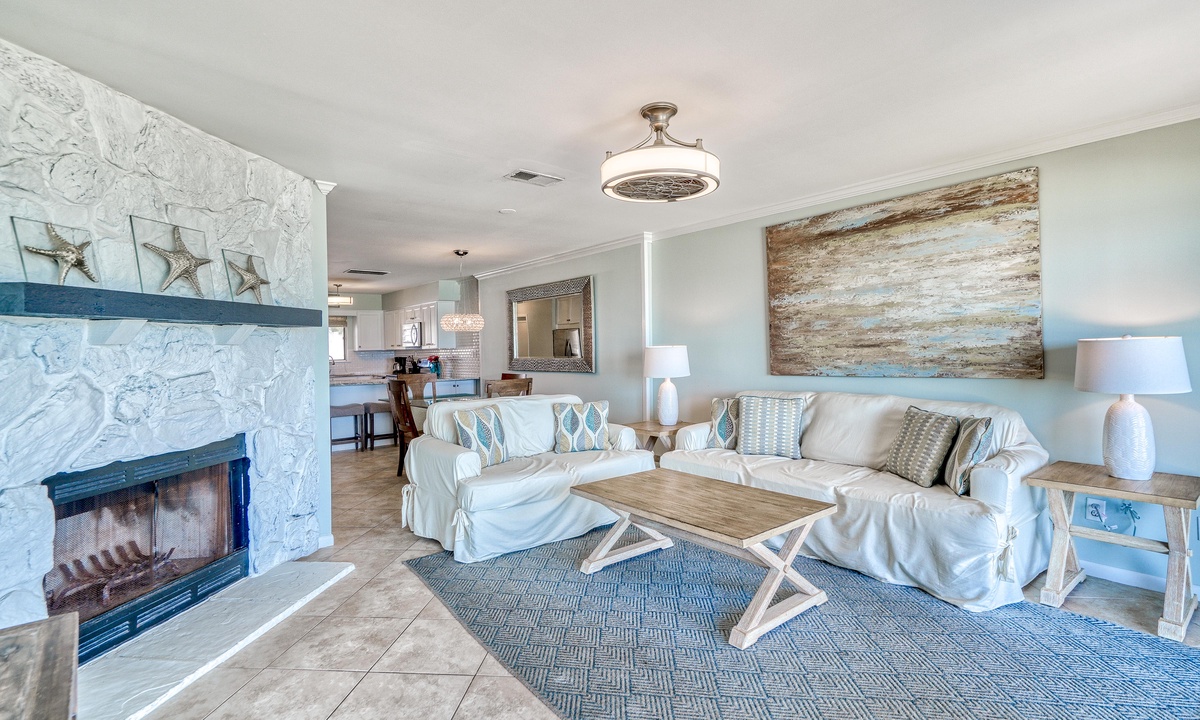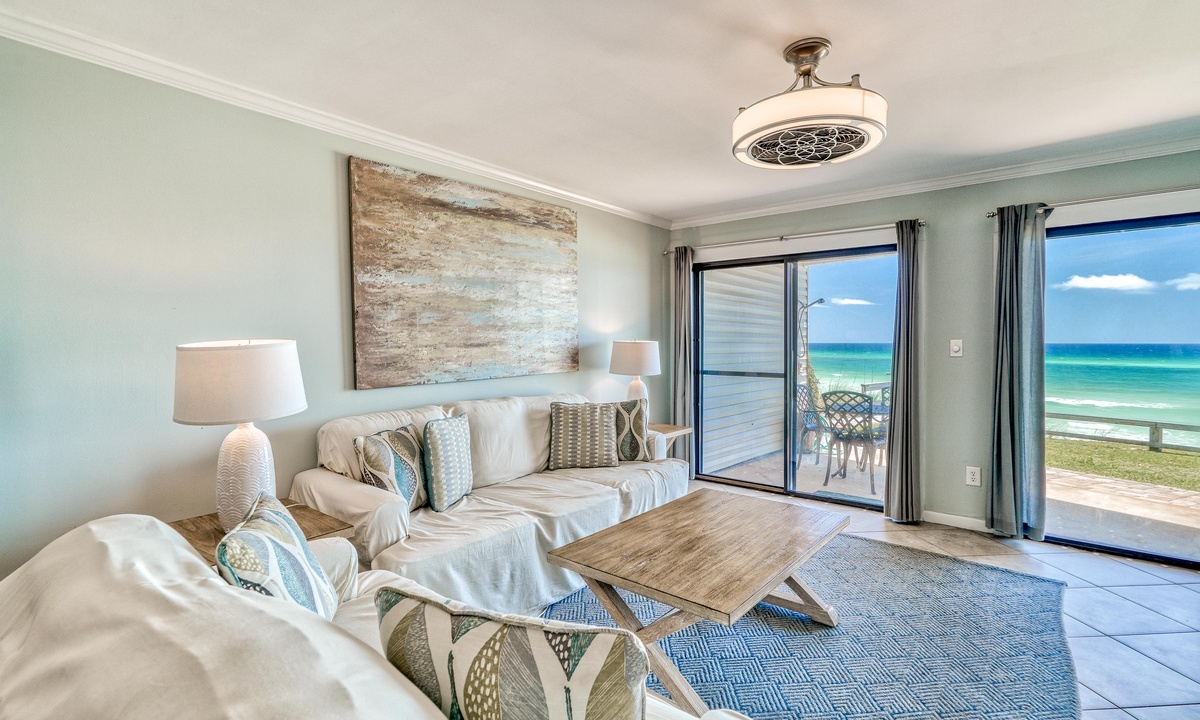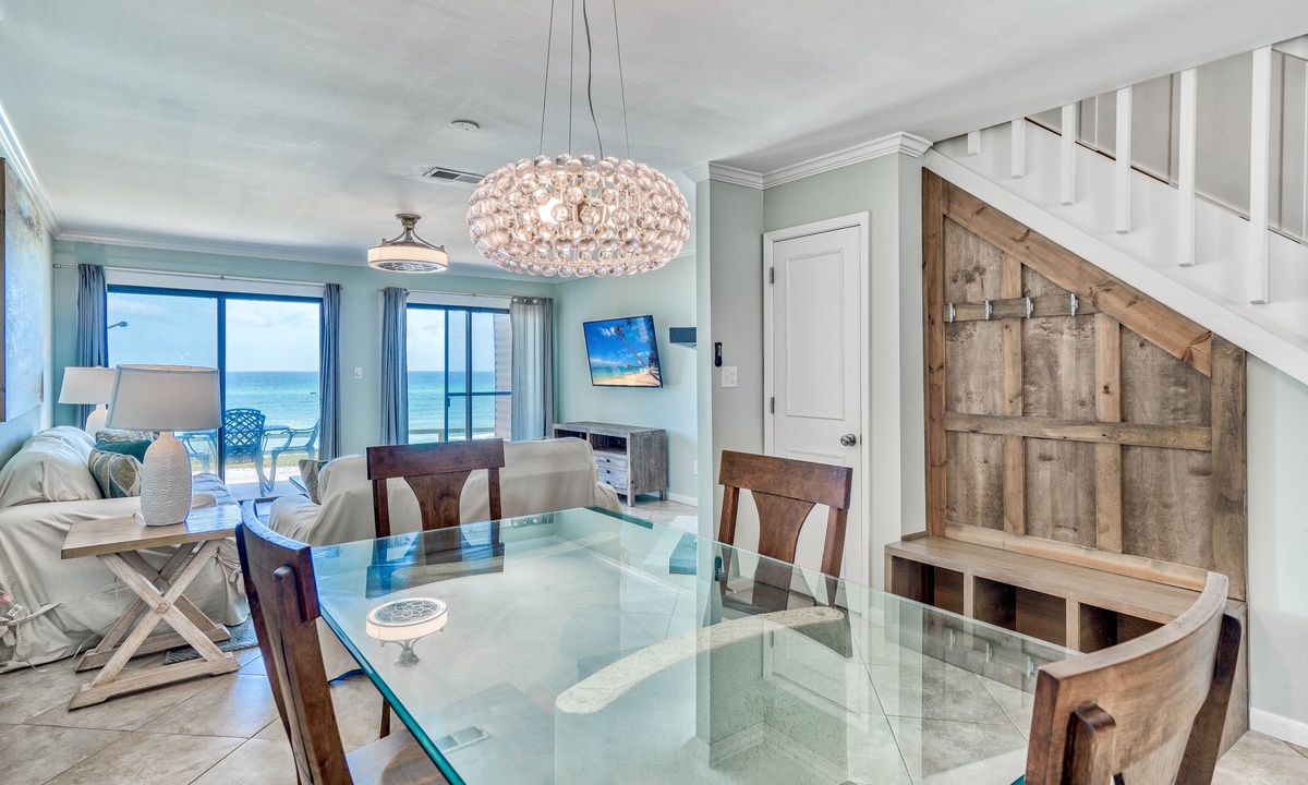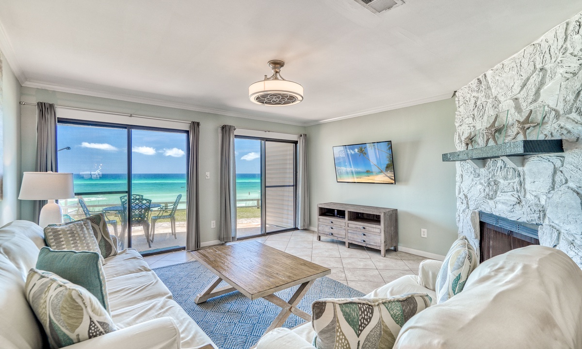 ⭐ "Unbelievable view! Steps to the beach and very comfortable beds. Hosts were incredibly responsive!" – Melissa G.Experience the perfect blend of comfort and coastal elegance in this beautifully renovated, open-concept living space. The living room boasts expansive glass doors that showcase breathtaking Gulf views and lead directly to the Gulf-front patio. Unwind on brand-new, stylish furniture while soaking in the tranquil atmosphere or stepping out for instant beach access.