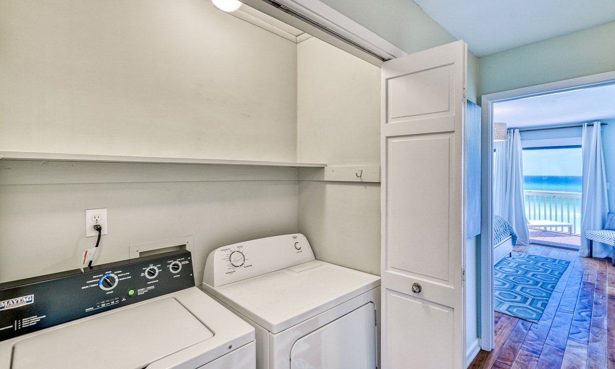 This was a wonderful condo for our family of four! So easy to get to the beach, we went back and forth all the time without it being a hassle. The condo was clean, well stocked and a great amount of space for our family. The double balconies were great for coffee drinking and dolphin watching! It was a wonderful week, we will definitely be back!