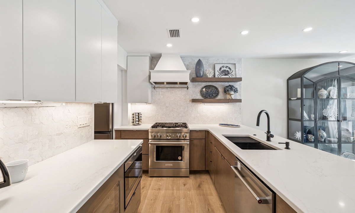 - Chef’s Kitchen with Wine Cooler: Beautifully equipped kitchen ideal for preparing relaxed coastal meals
