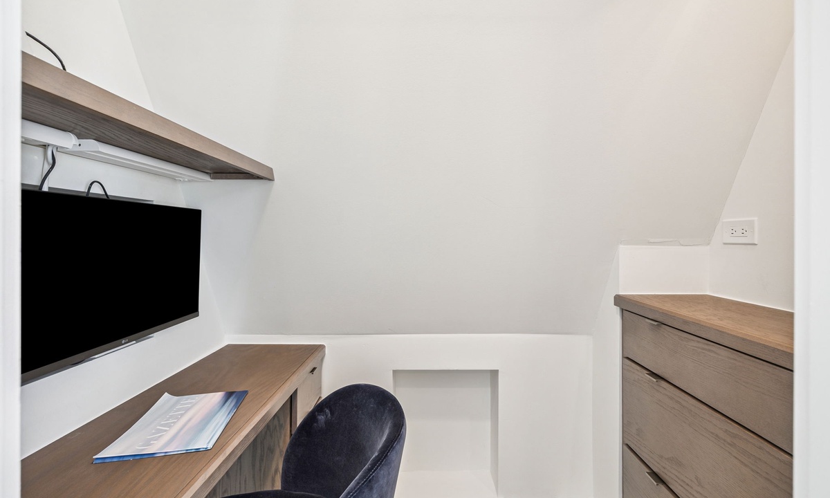 - Primary King Suite: King bed, flat-screen TV, private balcony access, dedicated workspace with monitor and En-suite with single vanity and walk-in shower