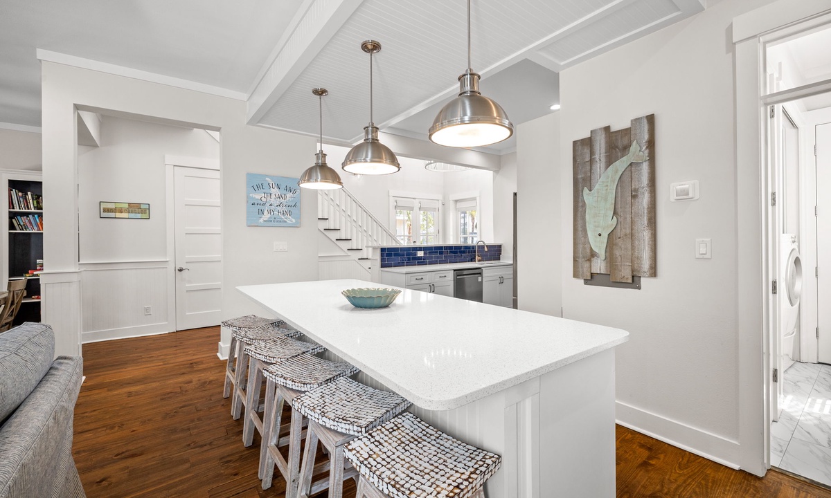 *** KITCHEN AND DINING ***The spacious and fully stocked kitchen is designed to handle everything from beach snacks to gourmet dinners. A large island makes prep easy and doubles as a casual dining spot.