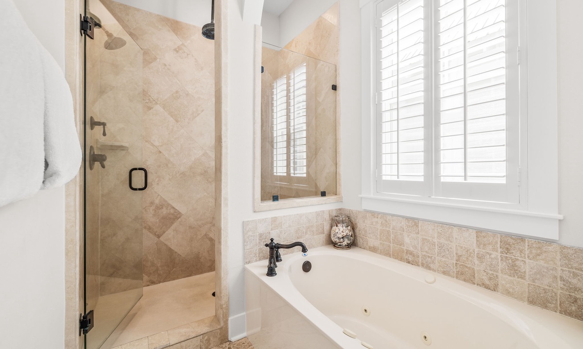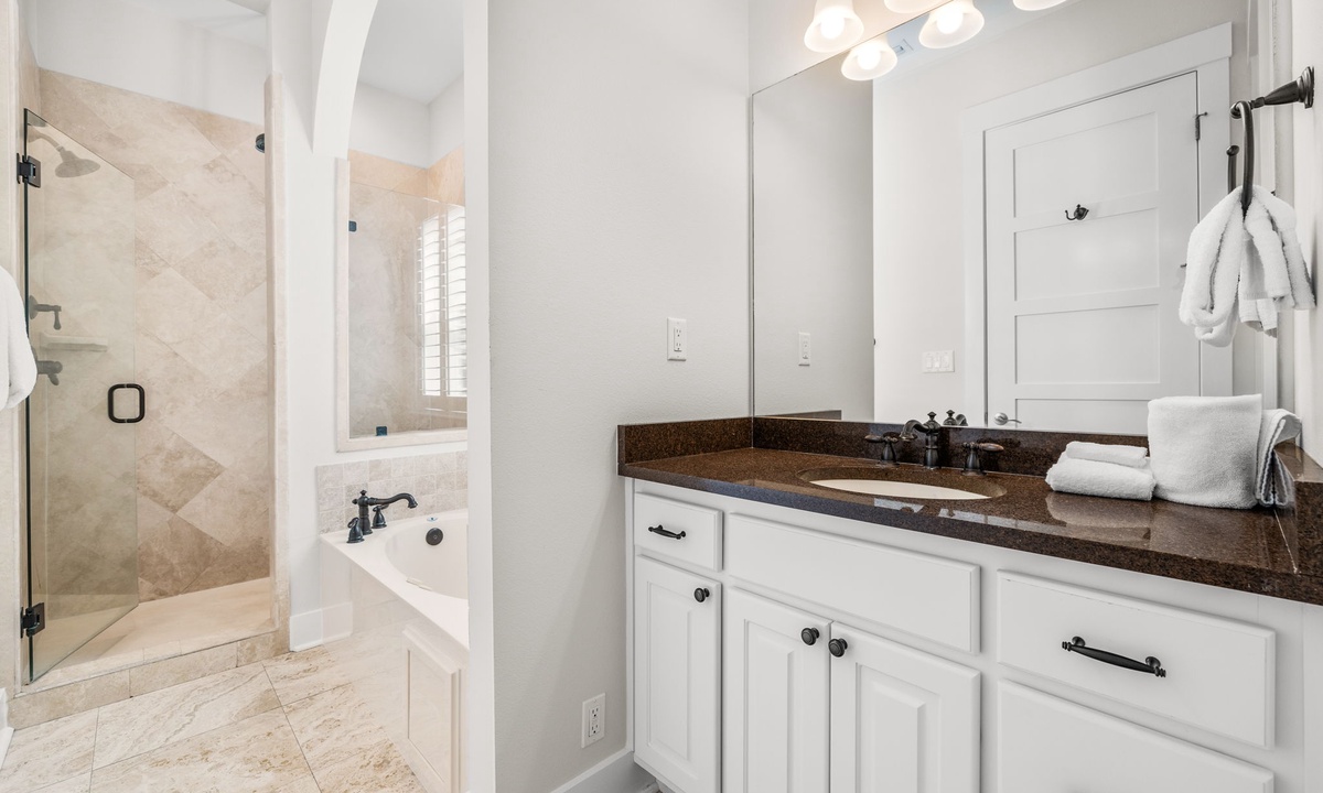 - Primary Suite: King Bed, Flat-Screen TV, En-suite with Walk-In Shower & Soaking Tub