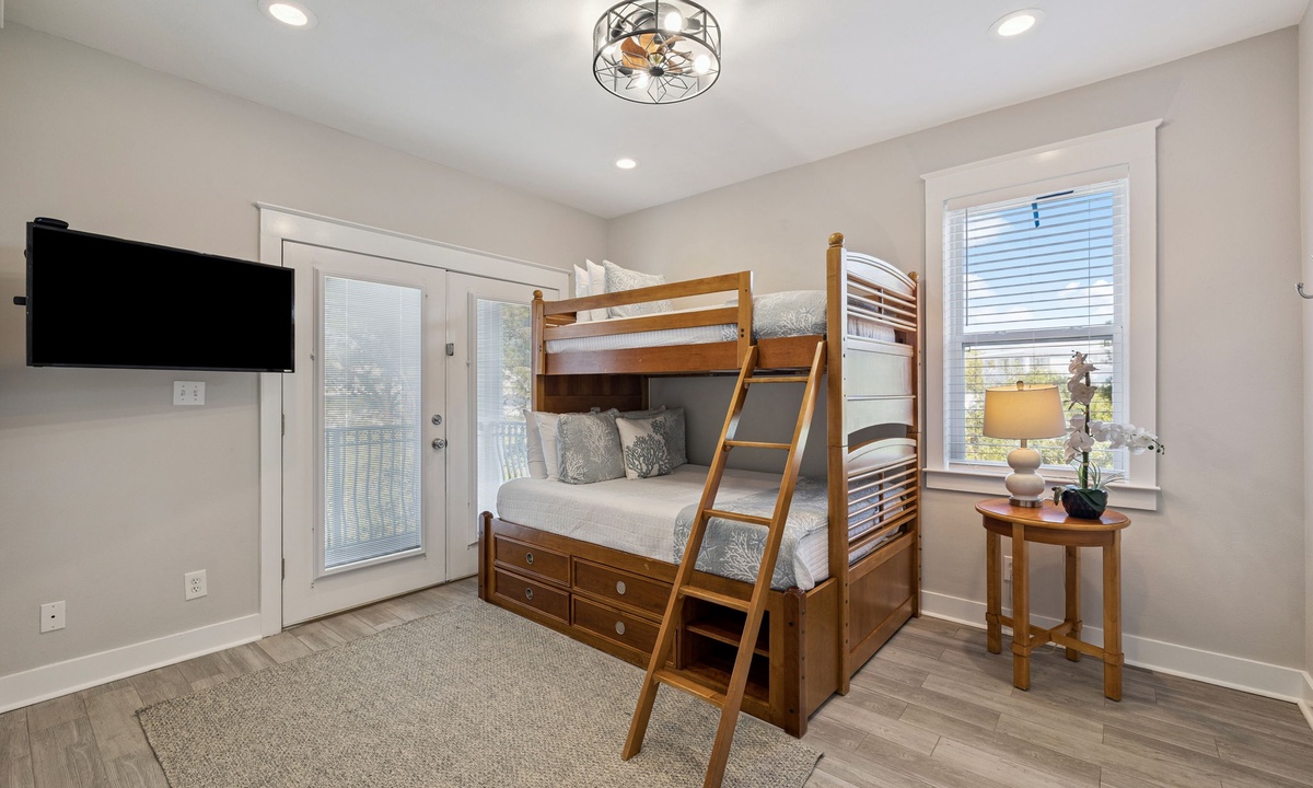 This was a perfect house for my family with 3 teenagers! There were so many spaces for different groups to hang out, whether playing video games in the carriage house, eating snacks on the top deck, or swinging on the front porch, there was always plenty of space. The bathrooms were great, the kitchen was stocked...we loved the empty pantry for all of our groceries! It was such a short walk to the beach, and across the street from the pool. Location was perfect! I can’t say enough great things...we feel very lucky to have rented this house!!!!