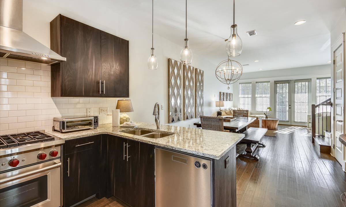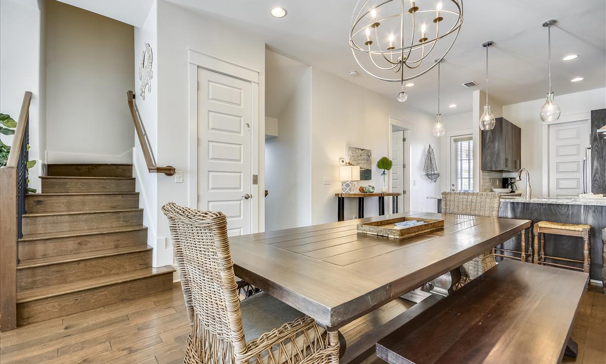 Cook up your favorite meals in a state-of-the-art kitchen with sleek appliances, expert design, and an open concept that keeps you connected to your family. The timeless decor and large dining table make it the perfect setting for cherished family moments.