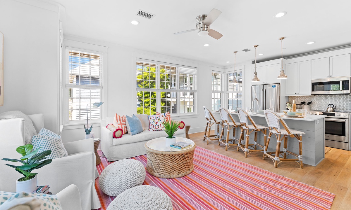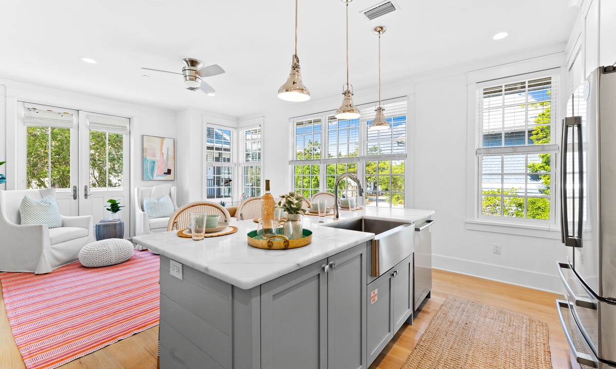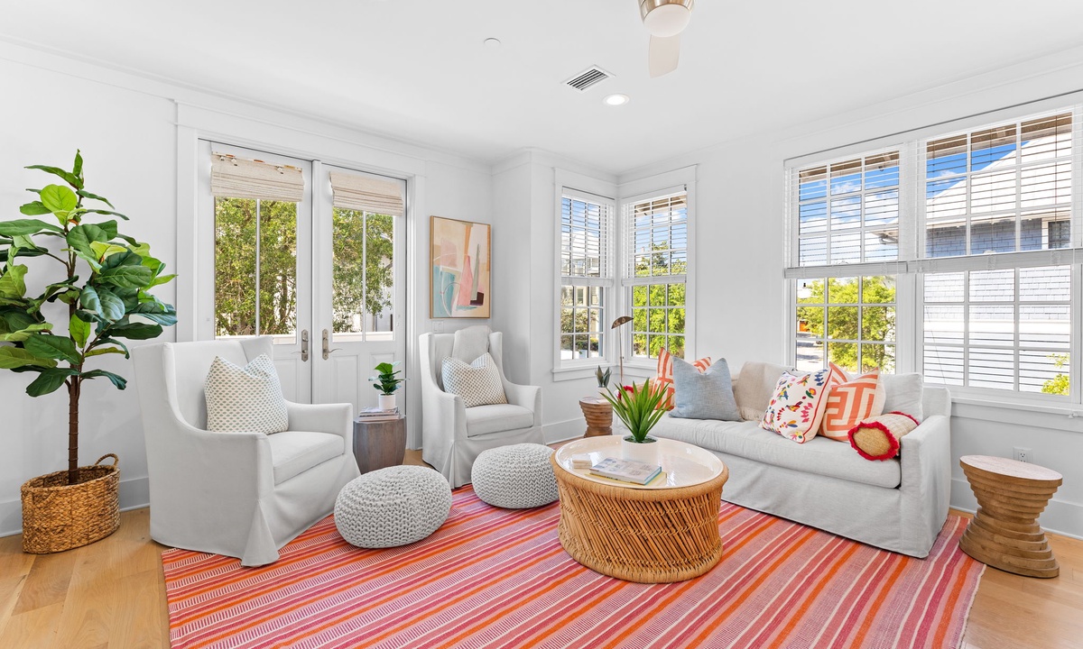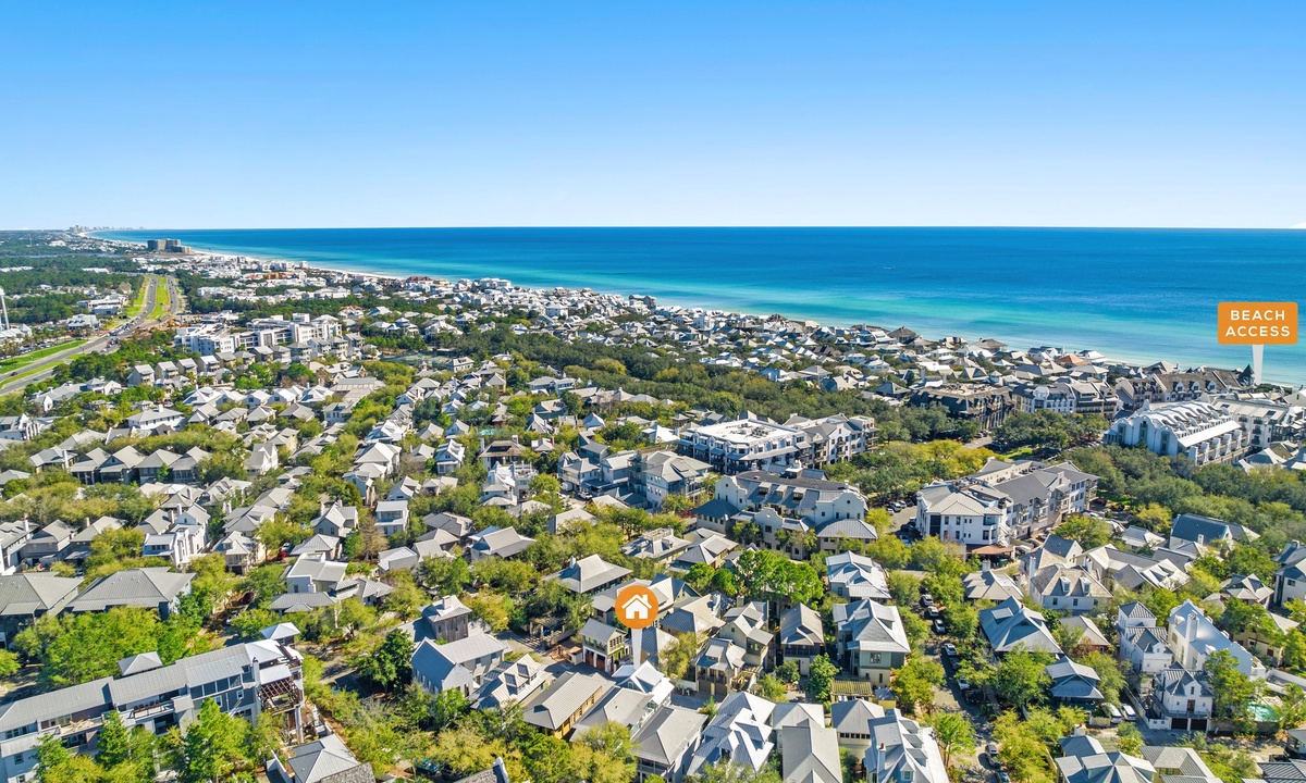 Nestled in the vibrant heart of Rosemary Beach, this carriage house puts everything at your fingertips. Grab your morning coffee at Amavida Coffee, enjoy locally-loved dining spots like La Crema and Edwards Dining, or relax on the sugar-white sands just a short walk away.