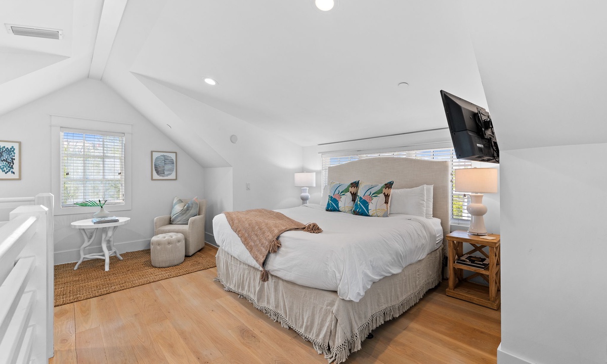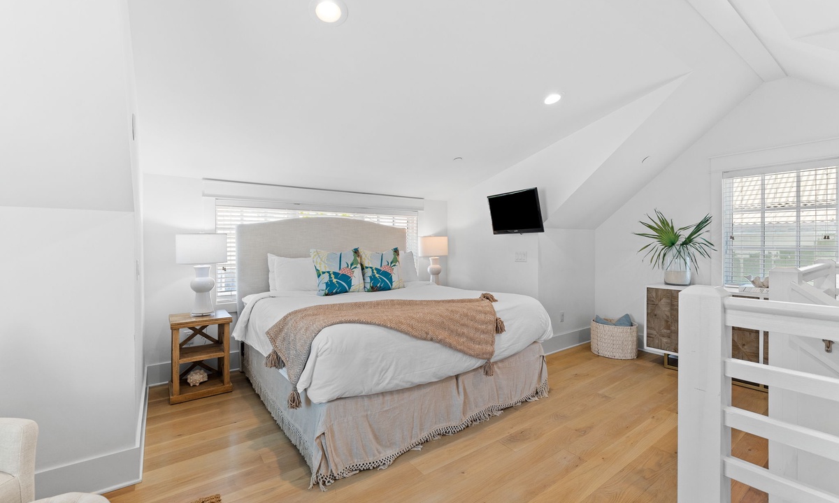 Find restful luxury in every corner of this newly renovated carriage house. The king-sized primary loft provides a chic and cozy retreat, while the built-in twin bed with its own privacy door ensures everyone has their own relaxing space.