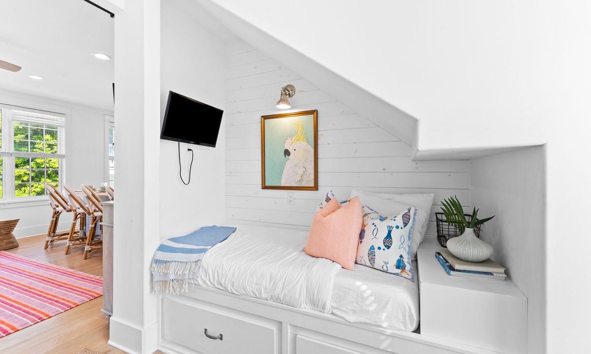 This was our 1st time booking a carriage house in Rosemary (we usually book homes, as we travel with other families). My husband and I really enjoyed this carriage house...it felt like our home away from home. I don’t think I can fully express how CLEAN this place is! It felt so new & fresh; it immediately made me feel comfortable. It’s decorated just like my home so we were instantly in love! The only thing you have to keep in mind is that the bathroom is on the main level, and the official bedroom is upstairs. If you get up in the middle of the night to use the facilities, it may be bothersome to you to go up & down stairs. However, there is a sofa bed, and single bed/daybed that can be used as sleeping options as well (on the main floor). Lastly, we unfortunately had internet issues on the majority of the days we rented, as my husband was working on all the days we stayed (but, the 30A staff was extremely responsive in attempting to fix). We would most certainly stay here again, and will recommend to family/friends.- Stephanie A from Atlanta , Posted: