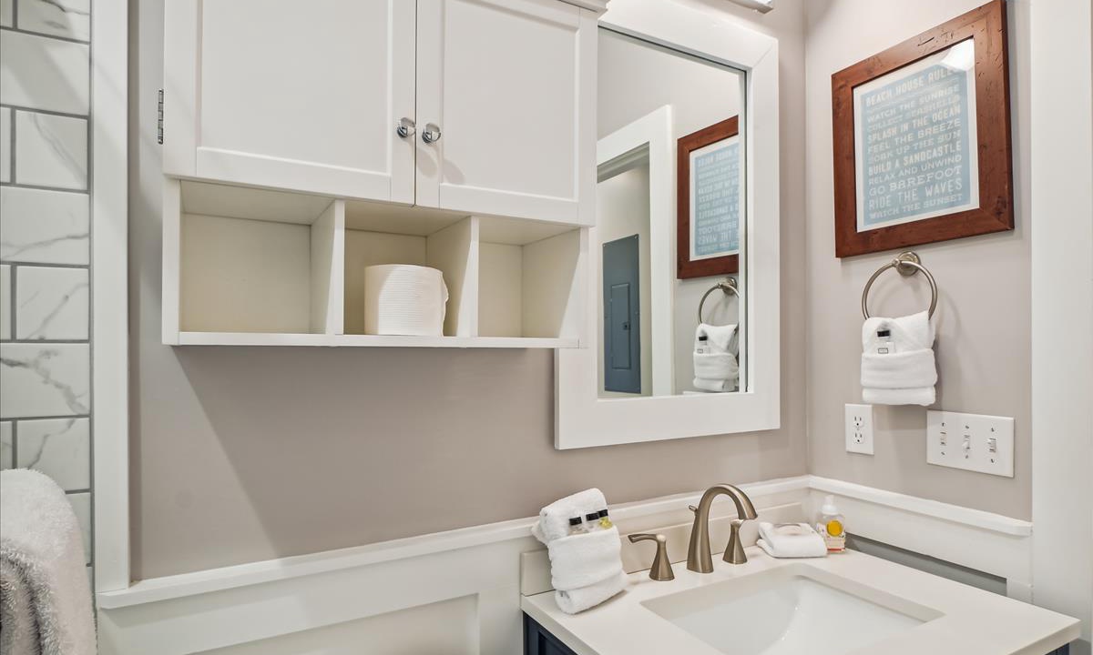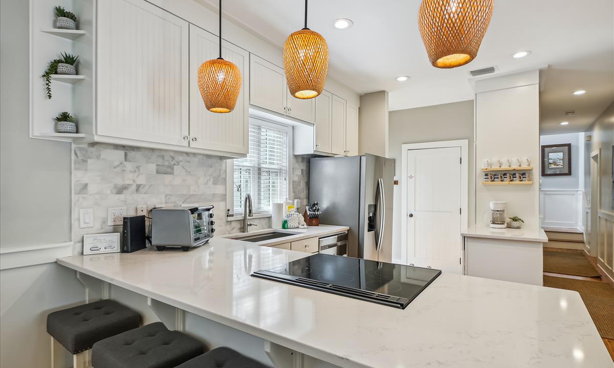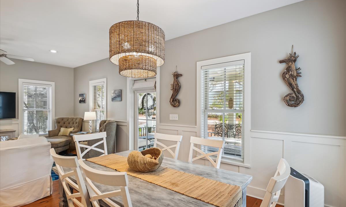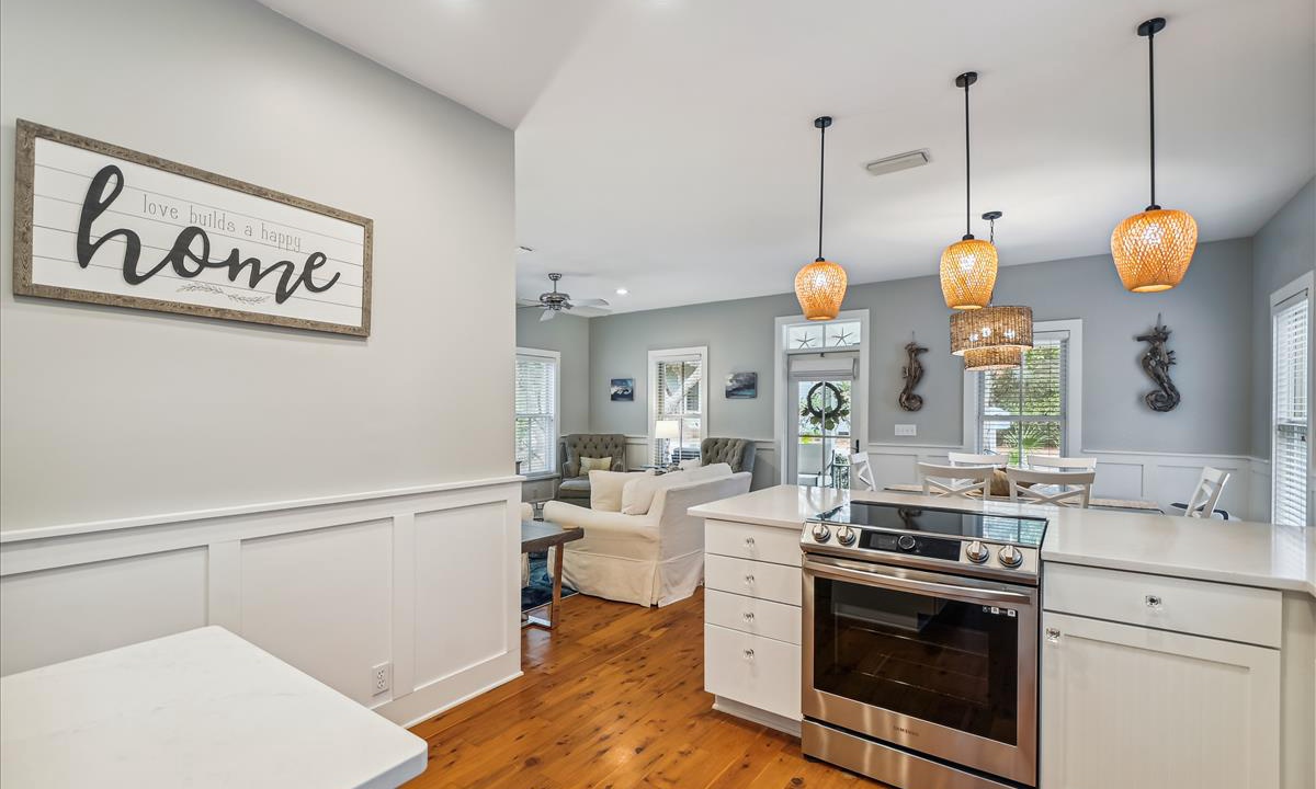 ⭐ “We had a wonderful time. The house was perfect and close to so many things!” - Lena W.The living area, the heart of the home, offers a bright and inviting atmosphere, complete with cozy, beach-inspired furniture that’s perfect for unwinding after a sun-filled day. Relax in this serene space with a cup of coffee while enjoying your favorite movies on the Roku-enabled TV.