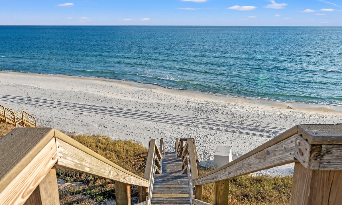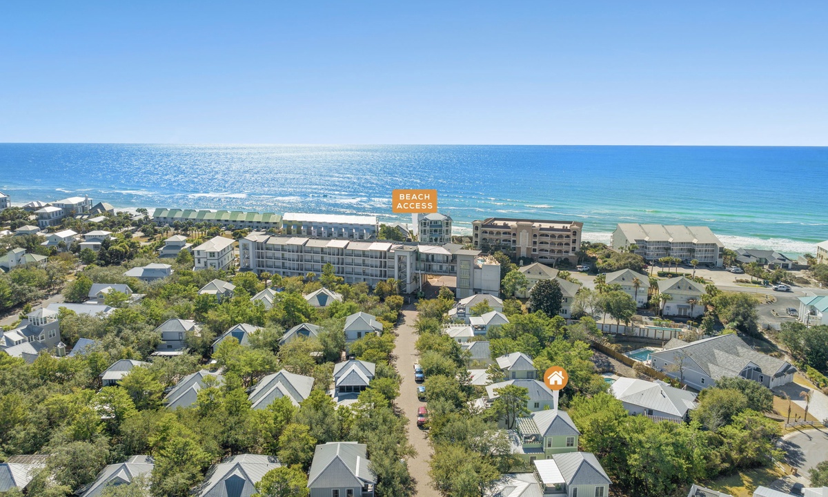 Thank you for your inquiry on our Seacrest Beach Vacation rental, 'San Souci'! This property does have a deeded, private beach access that is a 3 minute walk from the property.