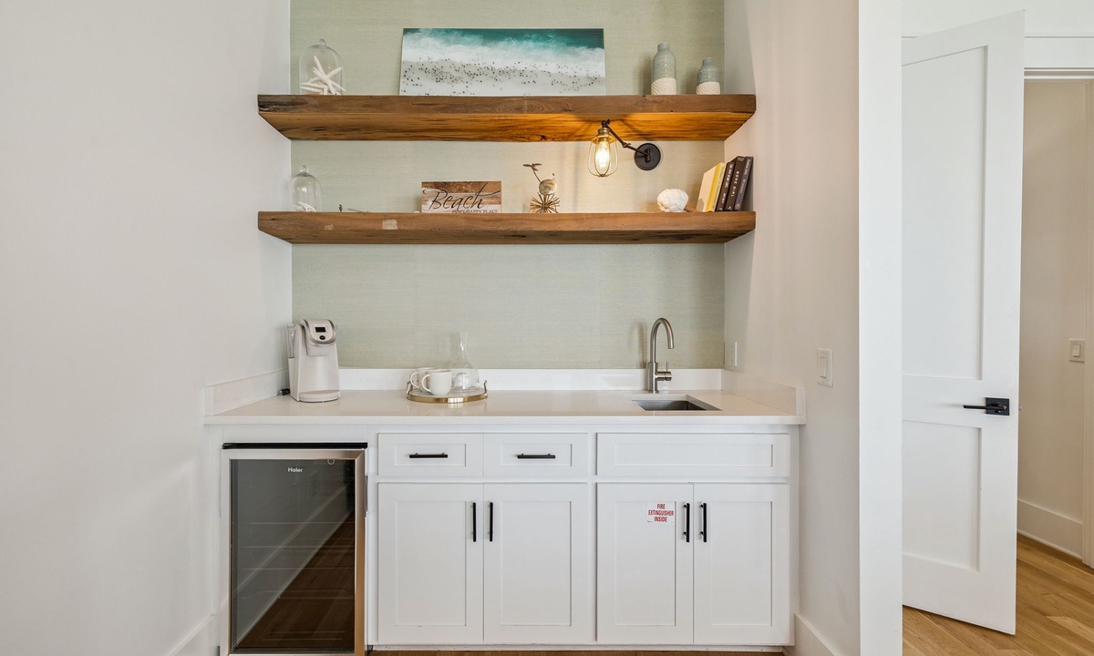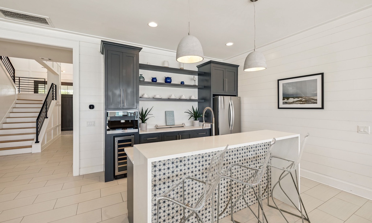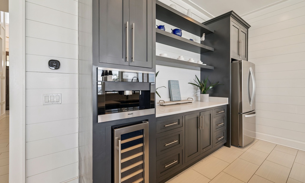 Q: Does the first floor kitchenette have a microwave or a toaster oven?- Karen M. Posted: 02/01/2021A:Hello Karen! Thank you for your interest in our Seacrest Beach Vacation Rental, Sea Star! This 1st floor kitchenette is equipped with a full size fridge, wine fridge, coffee maker, dishwasher and microwave! This home is a show stopper, come check it out!