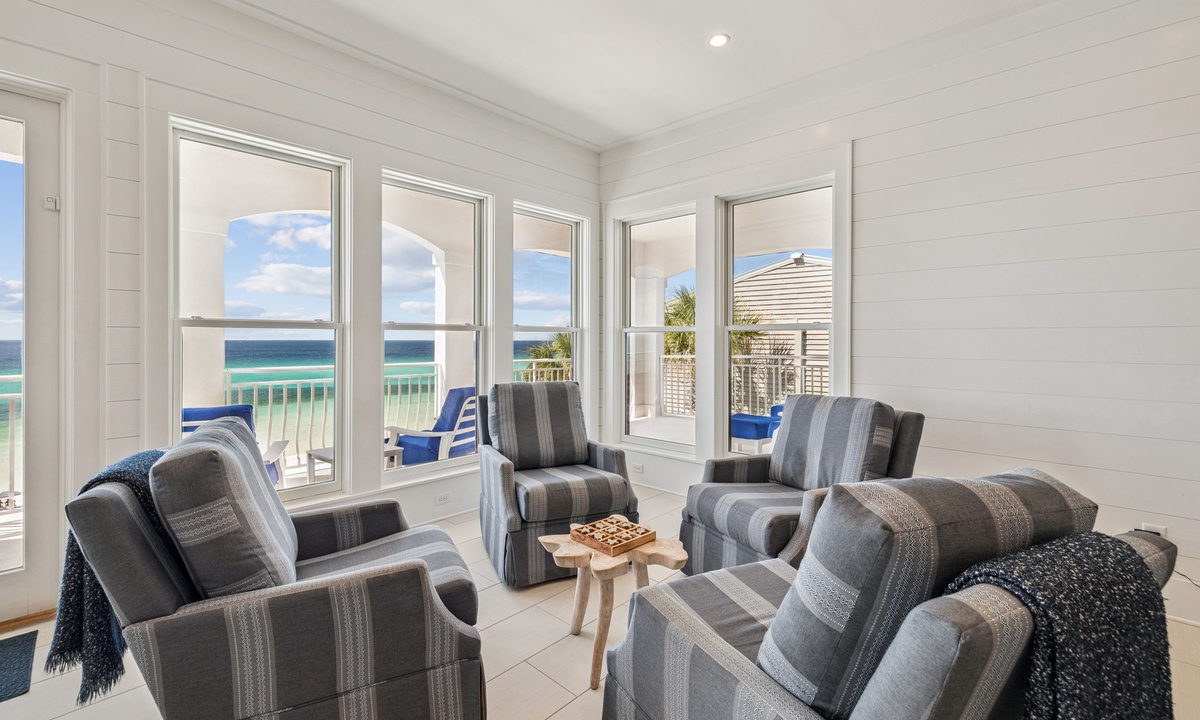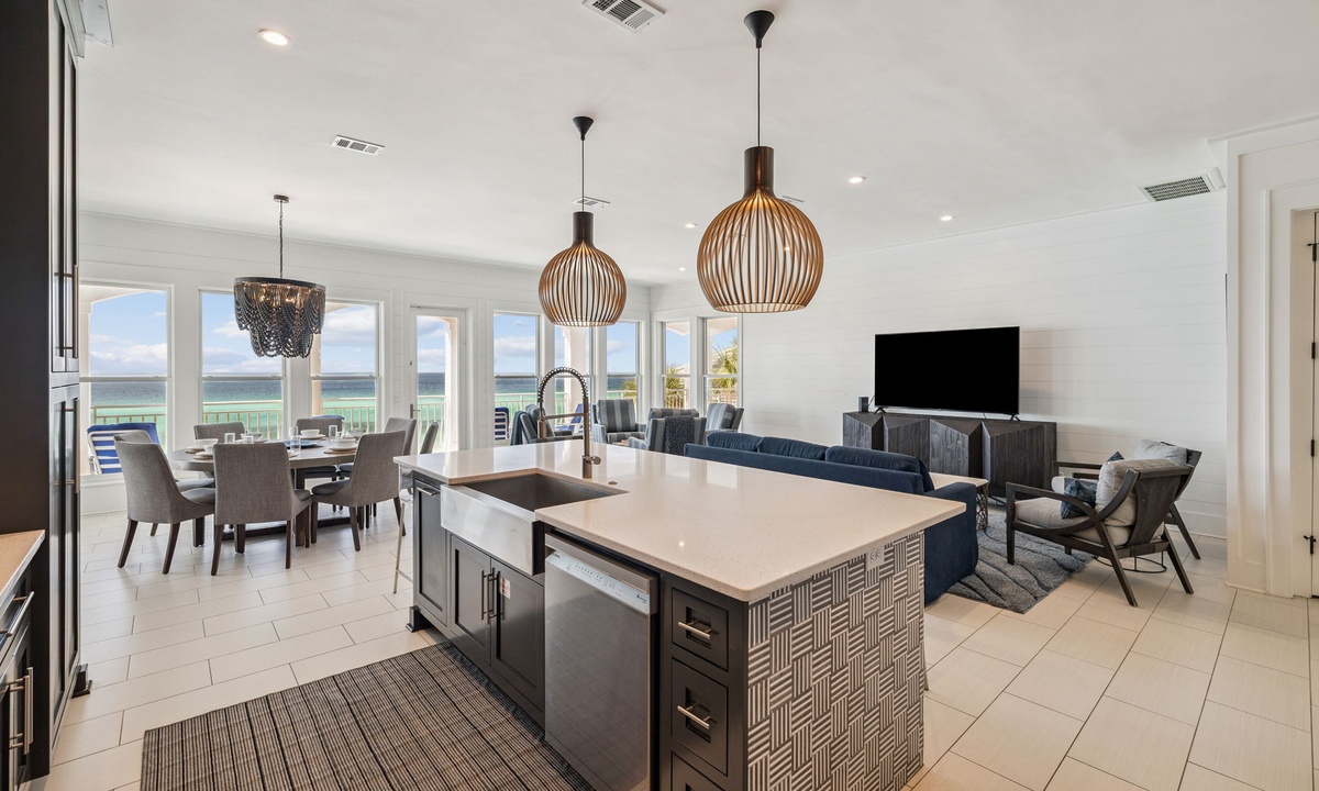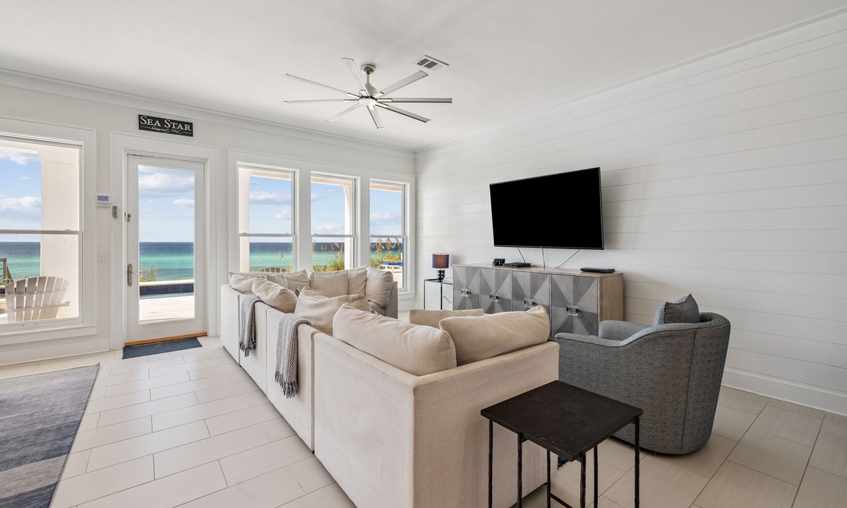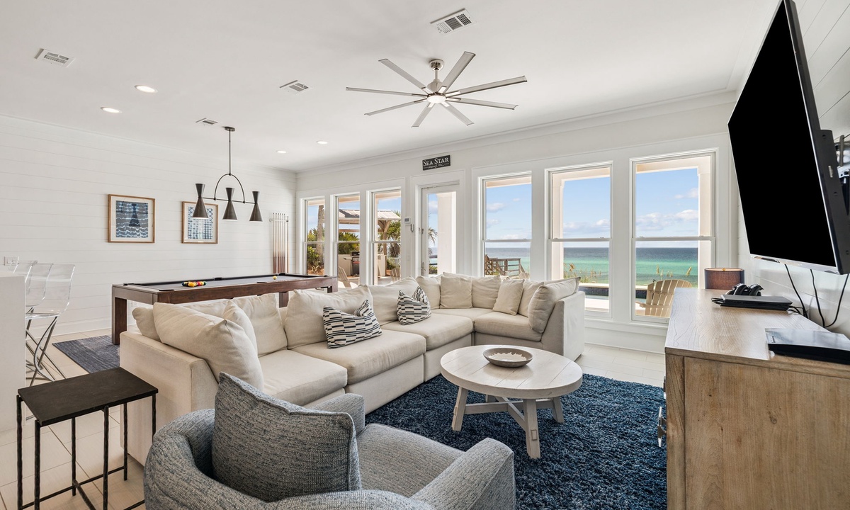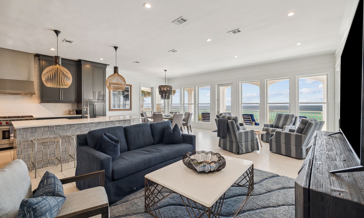⭐ "Sea Star was a dream! Gorgeous views, spacious bedrooms, and thoughtful amenities made this stay one to remember. Can't wait to return!" – Wendy D.Enter the open-plan living space where comfort meets elegance. Located on the second floor, the main living area is thoughtfully designed to bring families and groups together. With its expansive layout and stunning emerald Gulf views, it offers the perfect setting for both relaxation and entertainment.